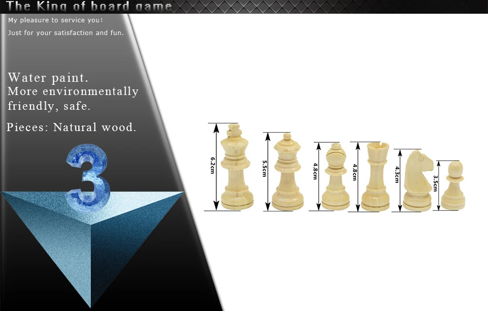 Chess high: King 6.2CM, Queen 5.5CM, Bishop 4.8CM,