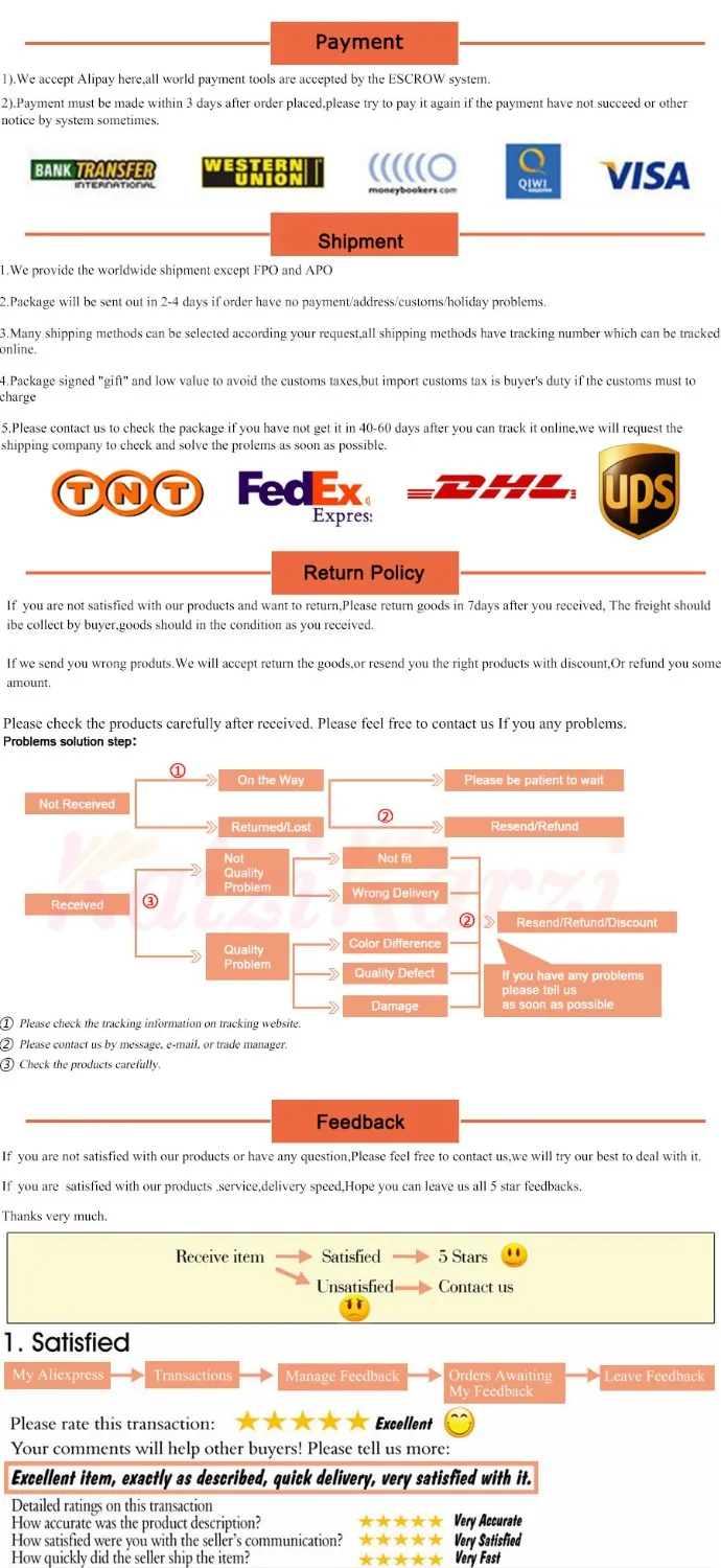 • If you did not receive the product within the guaranteed time( 45 days not including 2-5 day processing) you can request a refund or a reshipment.