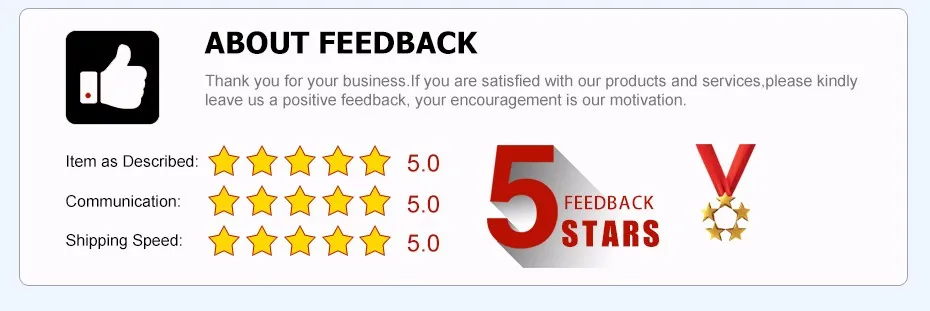 2. If you’re satisfied, please do us a favor to leave a 5 stars postive feedback after receiving the item.