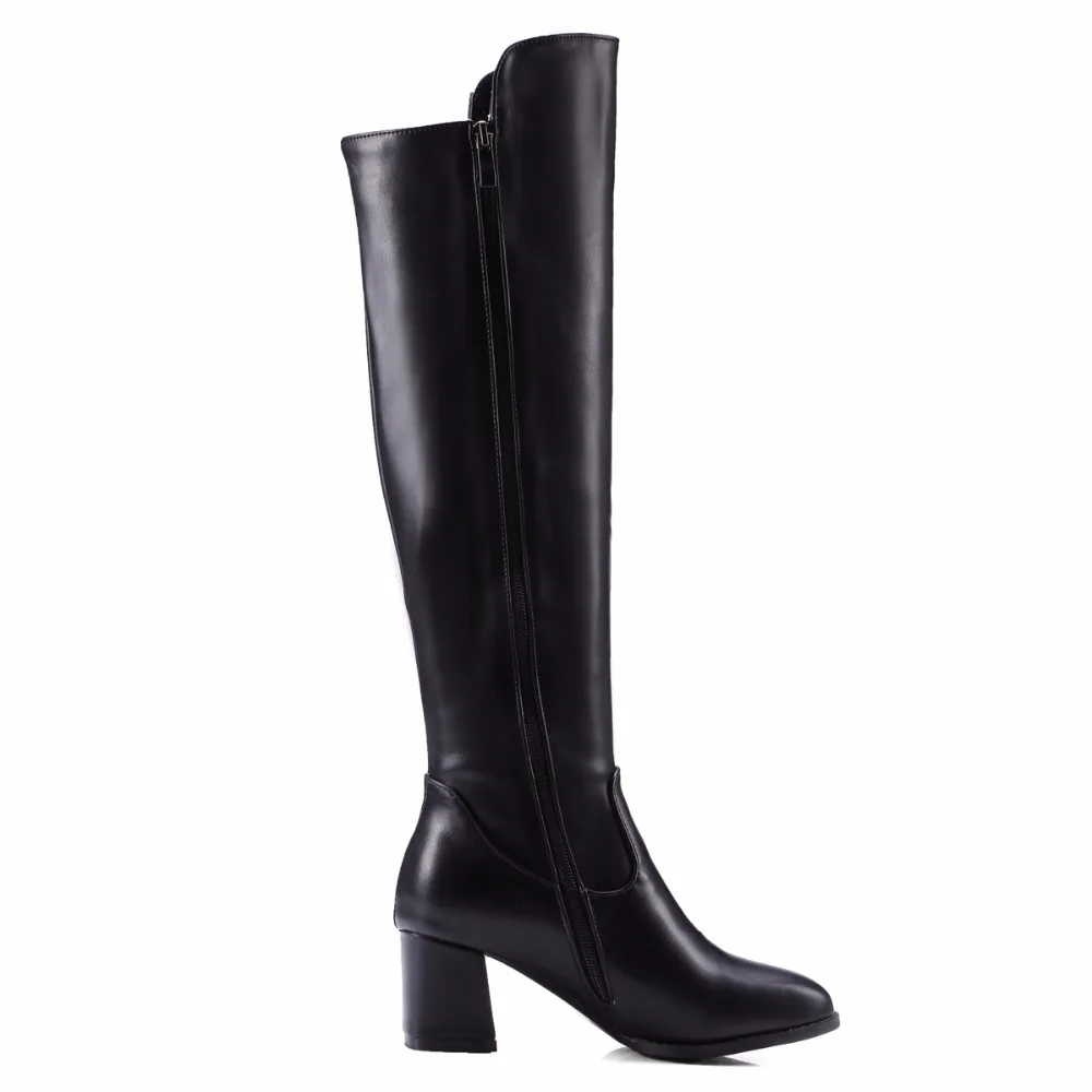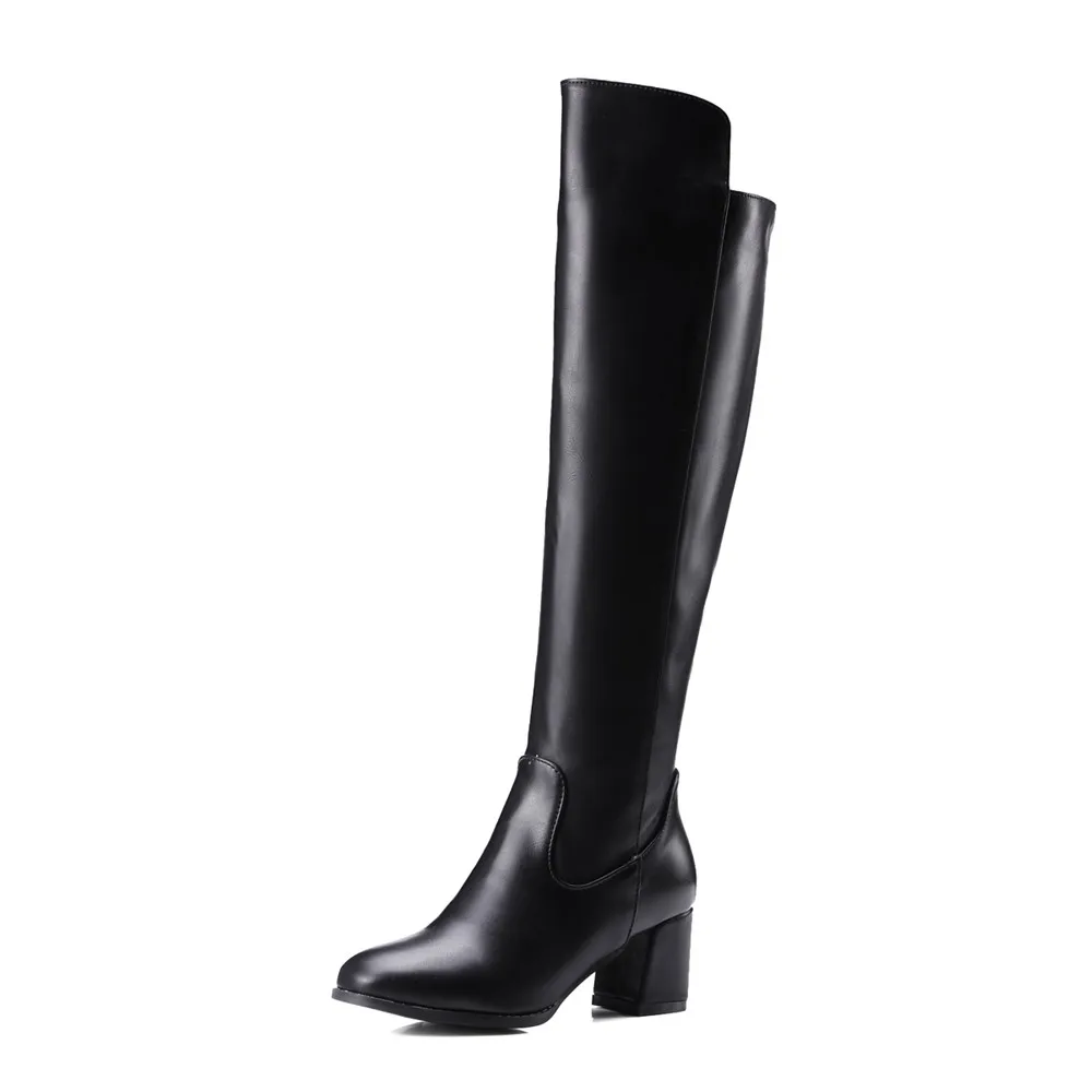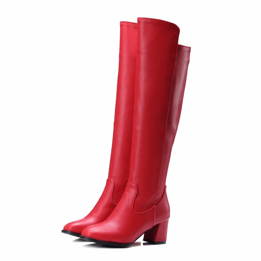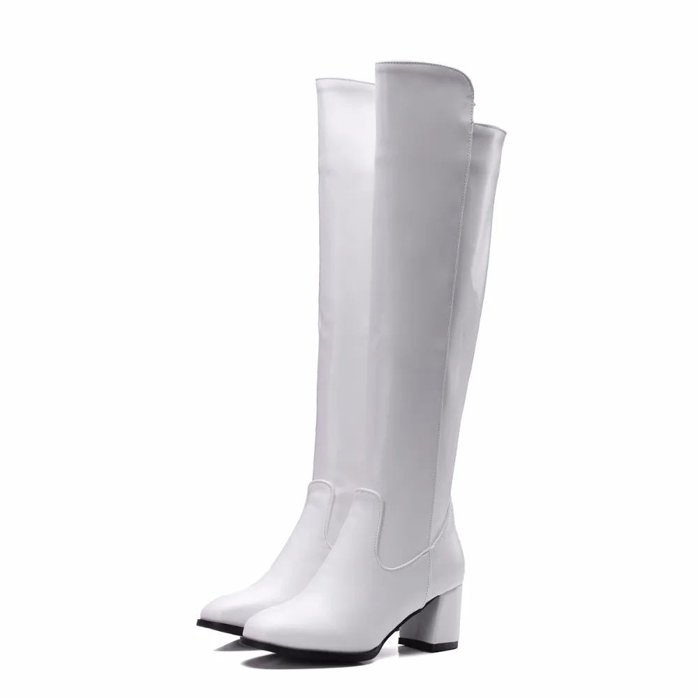 KEBEIORITY Plus size 33-48 Women Boots 2017 Sexy Thick High Heel Autumn Knee Boots Heels Women Black White Red Boots Female