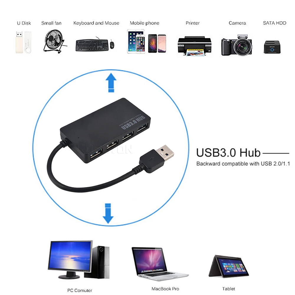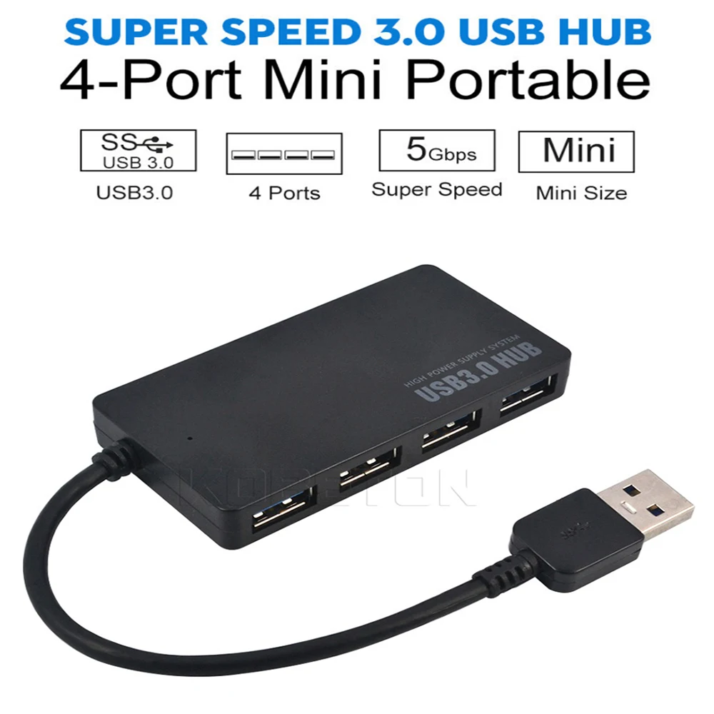 USB 3.0 4 Port Hub Wired USB Design 5Gbps 3.0 Splitter Adapter Converter Ultra Speed for Laptop Computer PC Windows