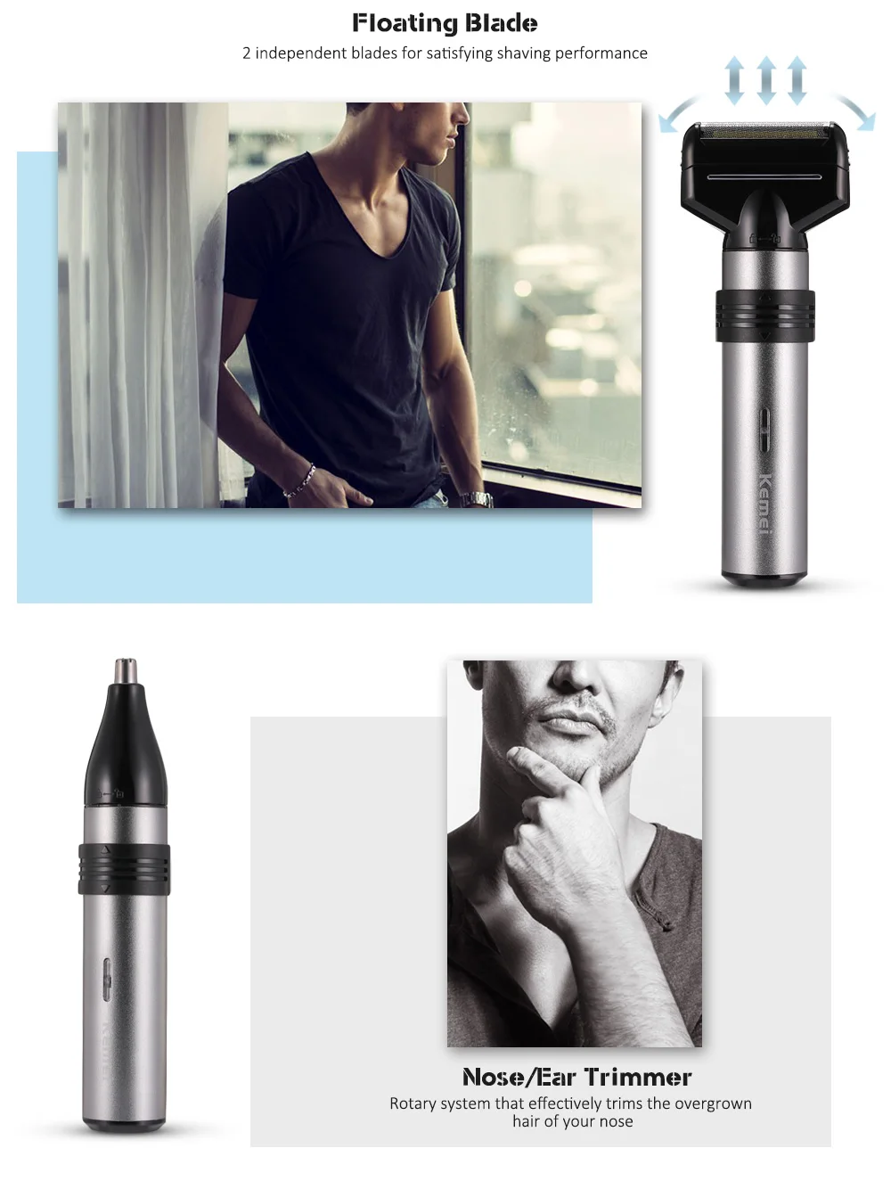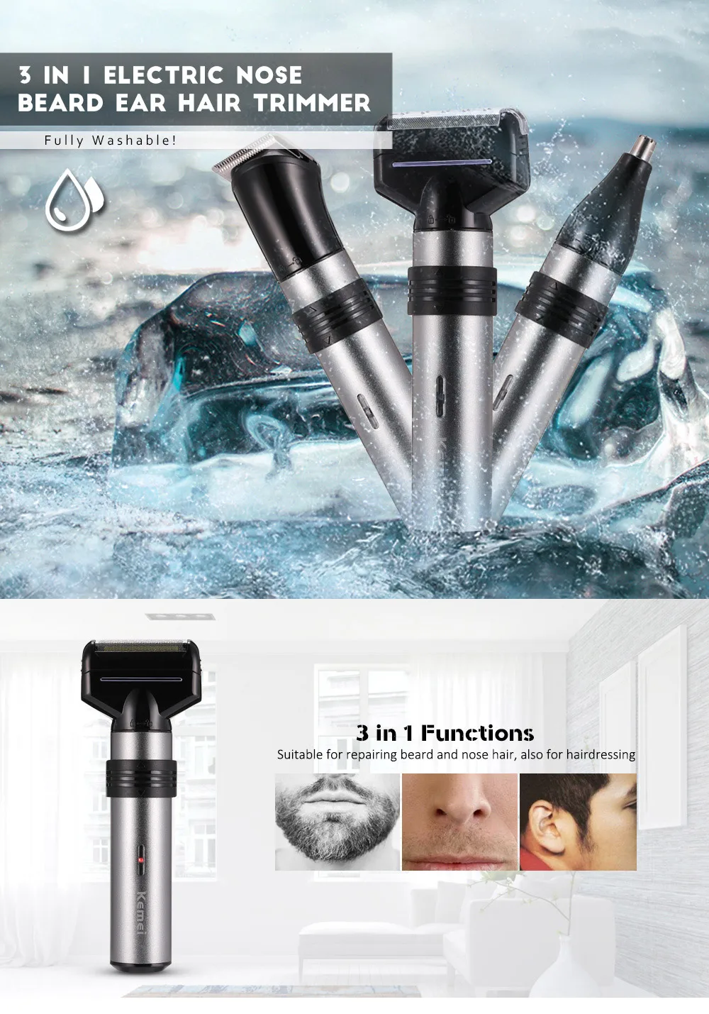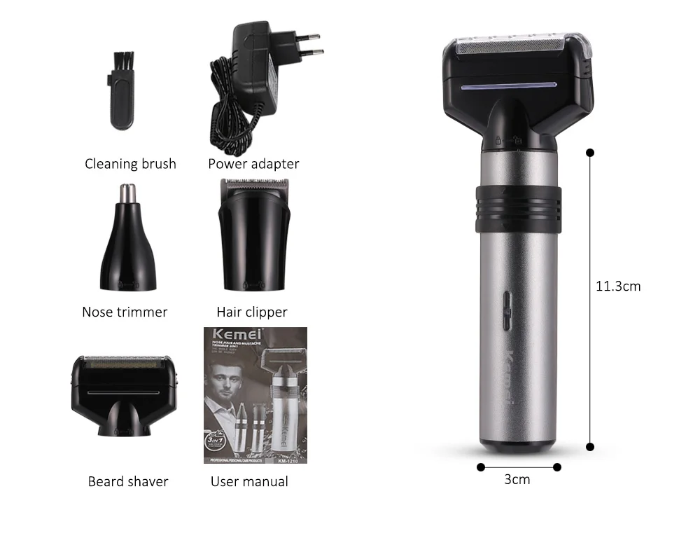 Kemei-1210 3 in 1 Men’s care combination Fully washable Electric Nose Beard Ear Hair Trimmer KM – 1210