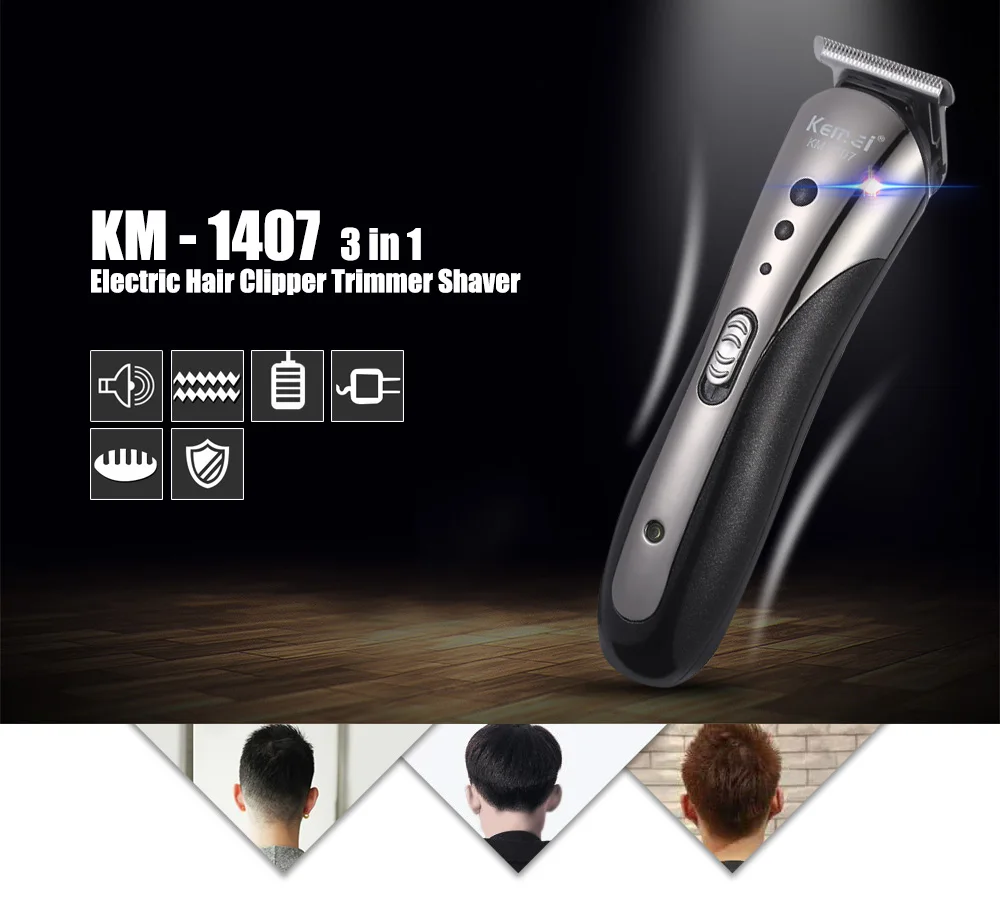 Kemei-1407 3 In 1 Professional High Quality Hair Clipper Trimmer Shaver Advanged Shaving System Hair Cutting With 4 Combs