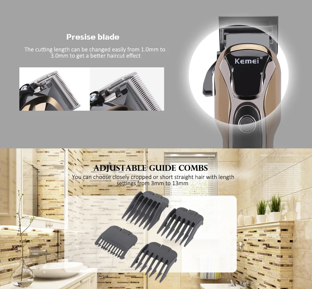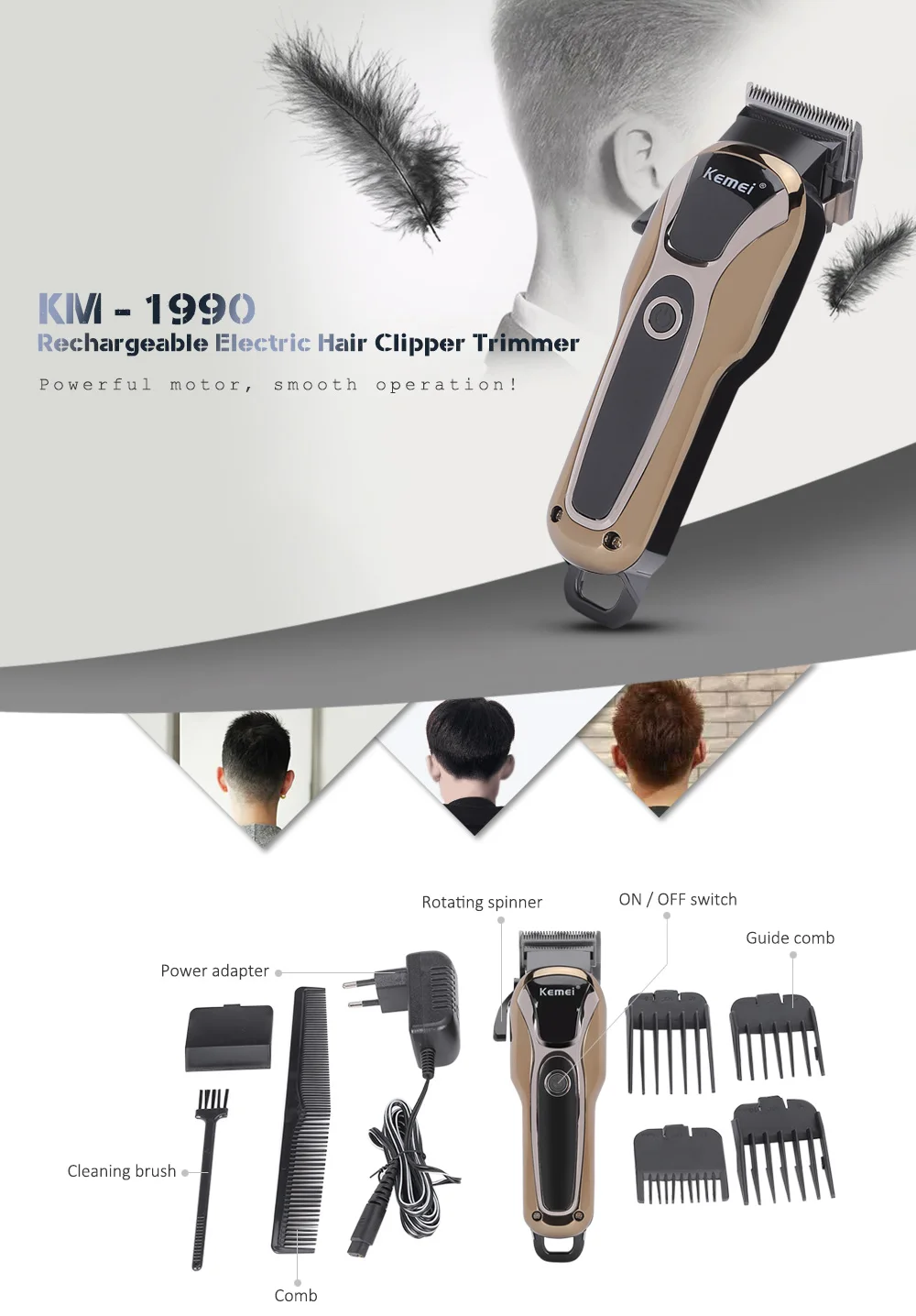 Kemei-1990 ElectricHair Clipper Men’s Hair Trimmer Hairstyle Cutting Shaver Rechargeable 4 Adjustable Guide Combs Beard Cutter