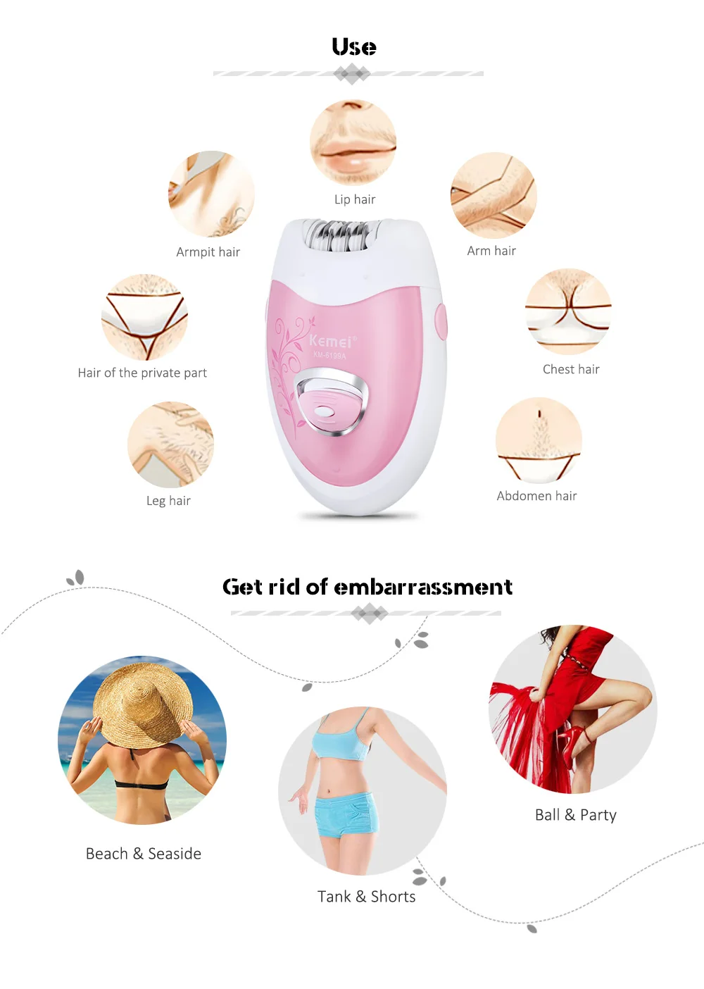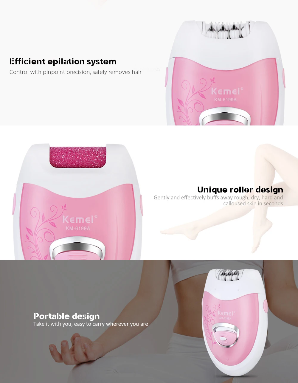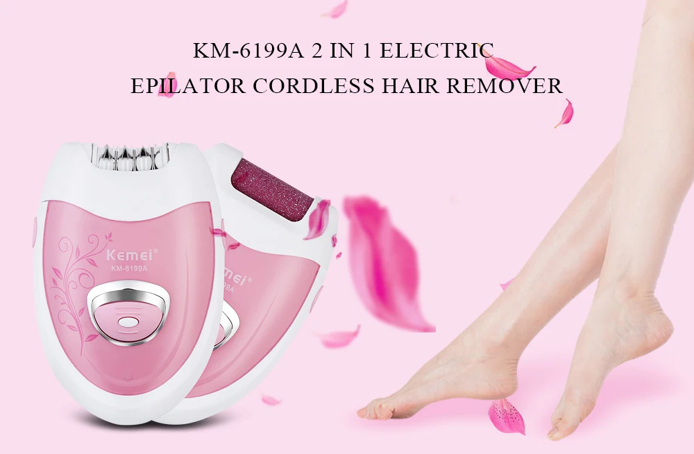 Kemei-6199A Women Rechargeable Electric Shave lady’s Epilator Grinding Feet Bikini Trimmer Professional Female Care 220-240V