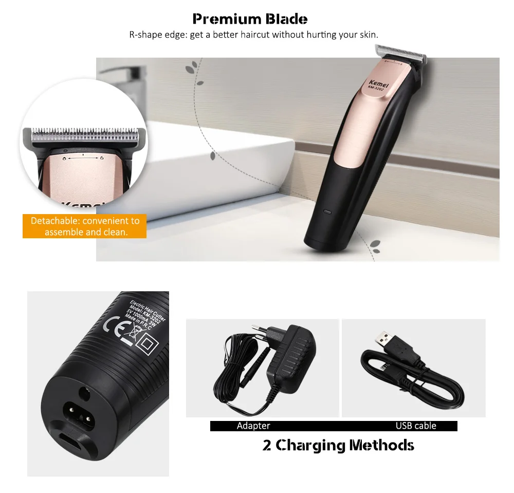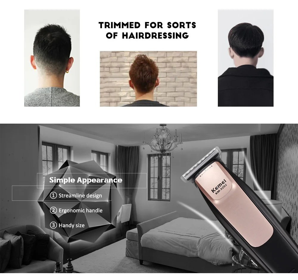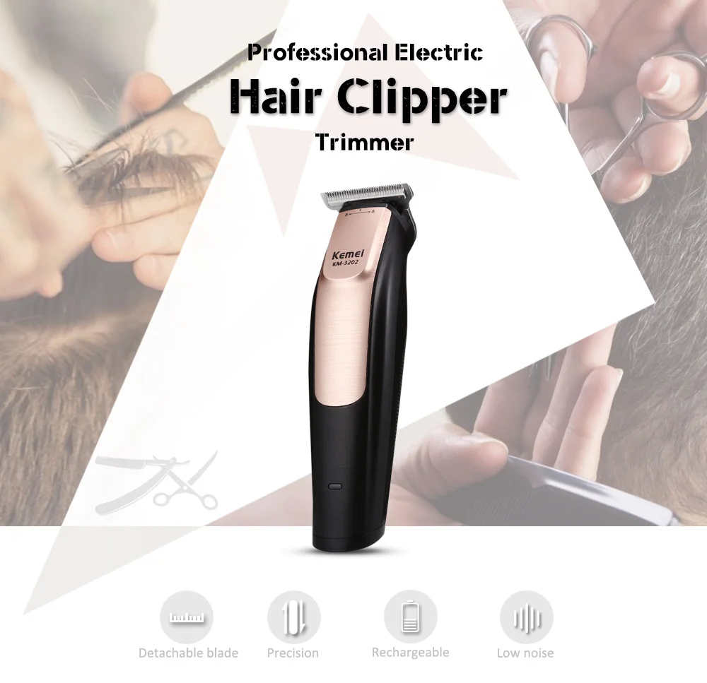 Kemei Bald Special Hair Clipper Stainless Steel Two-way Cutter Repair Hair Trimmer USB Charging Cordless Haircut Machine KM-3202