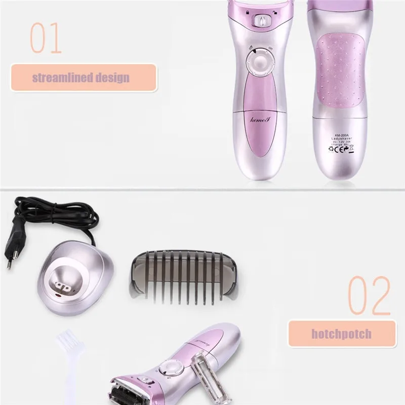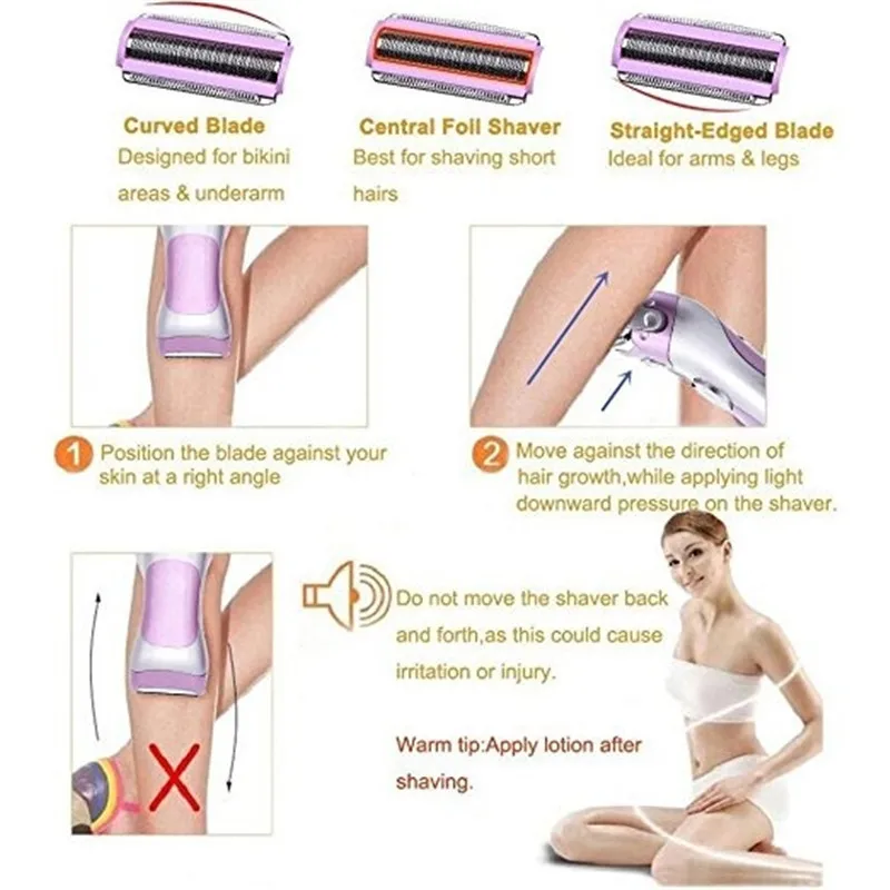 New Wet/ Dry Rechargeable Women’s Electric Shaver Razor Trimmer Remover Epilator Hair Removal for Face Leg Armpit Arm Bikini