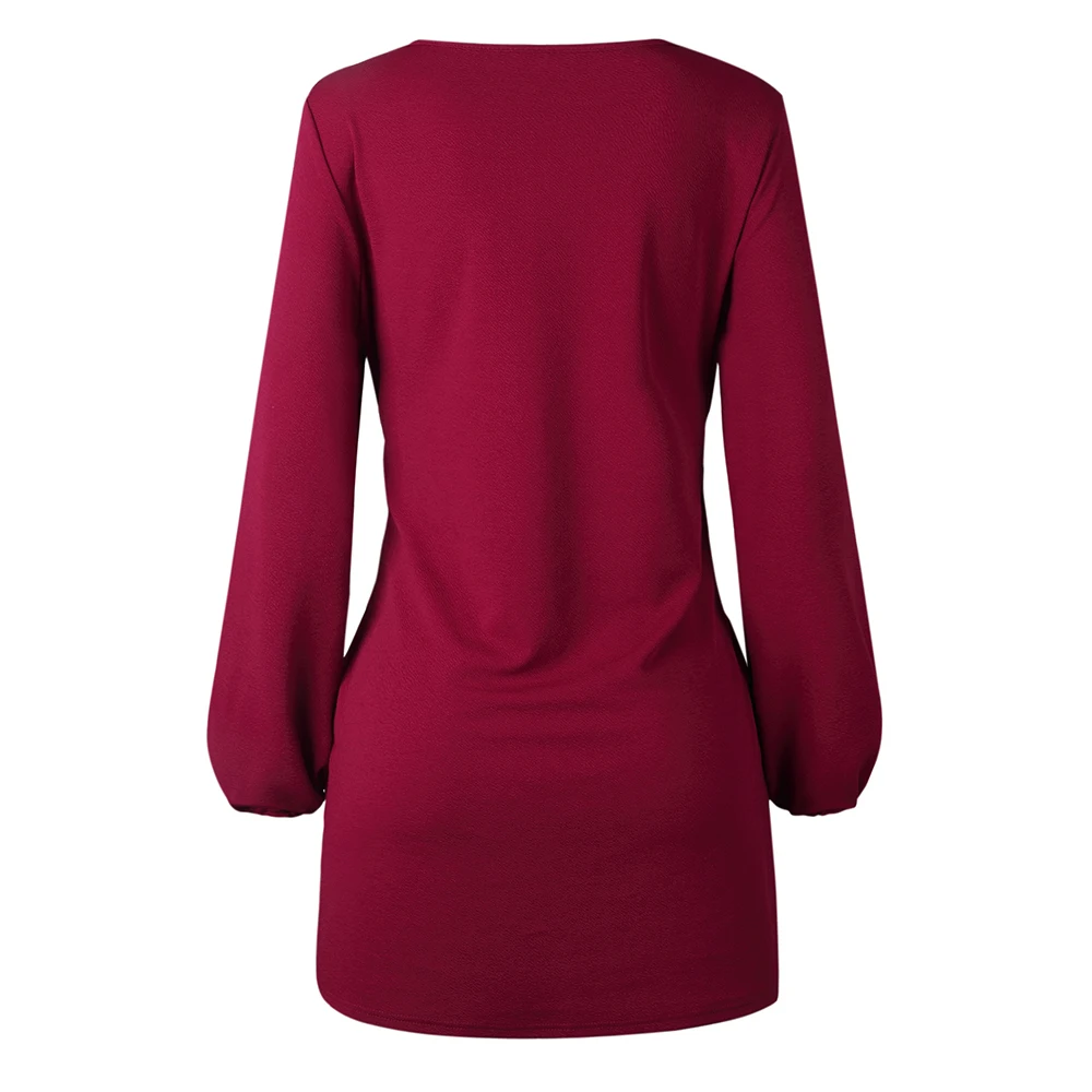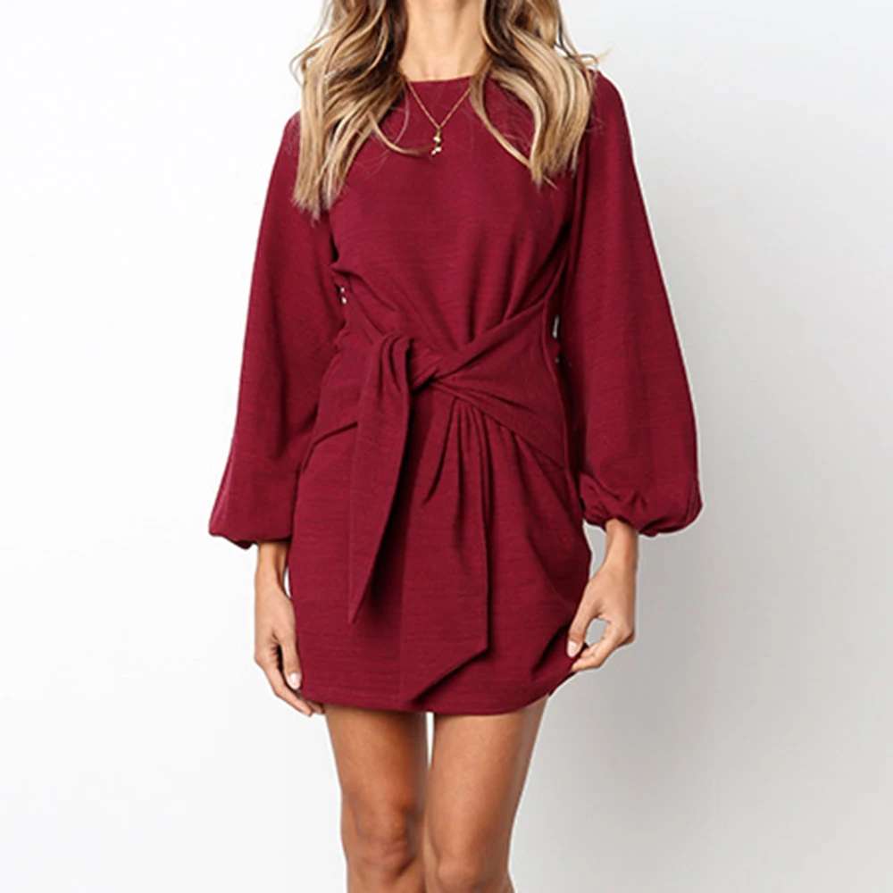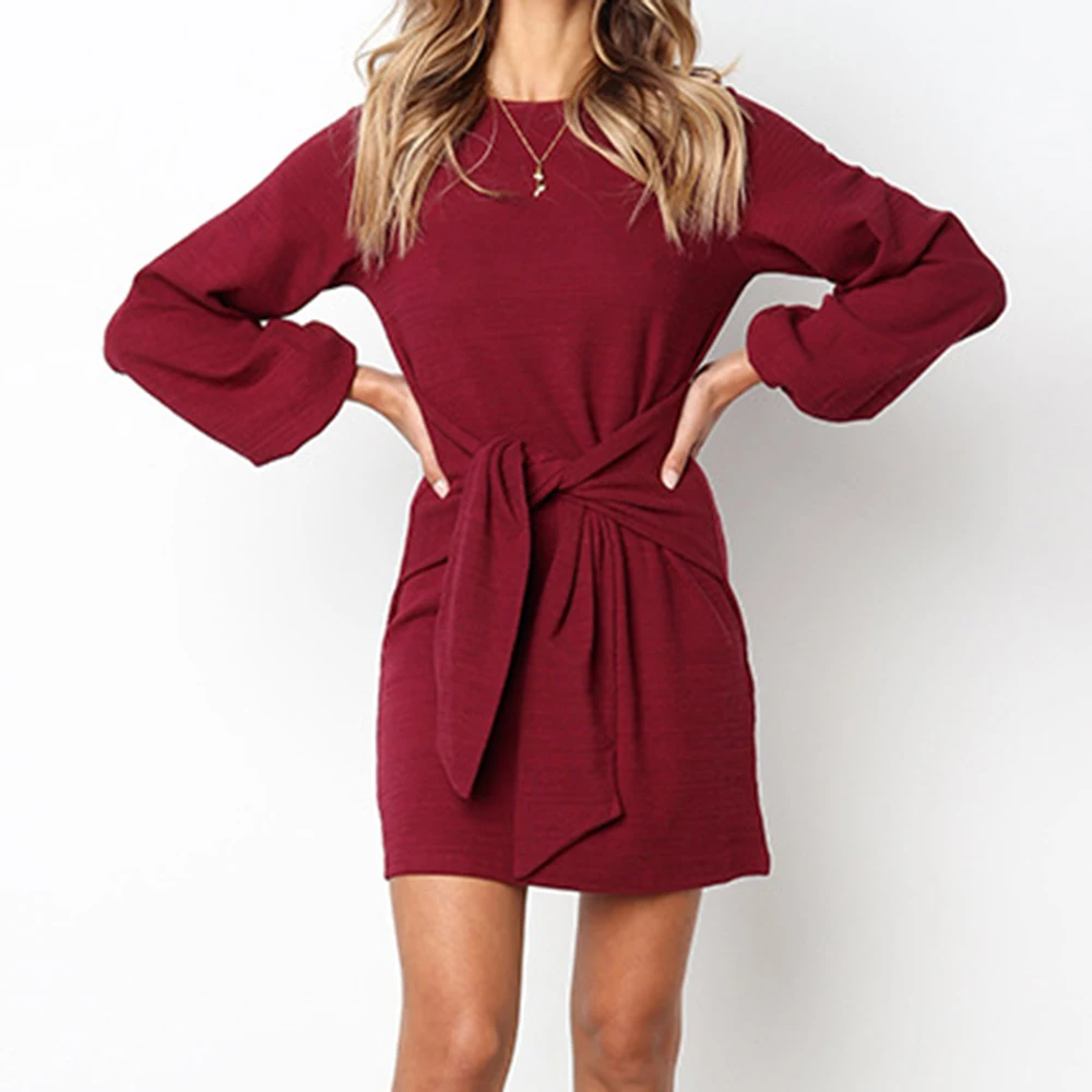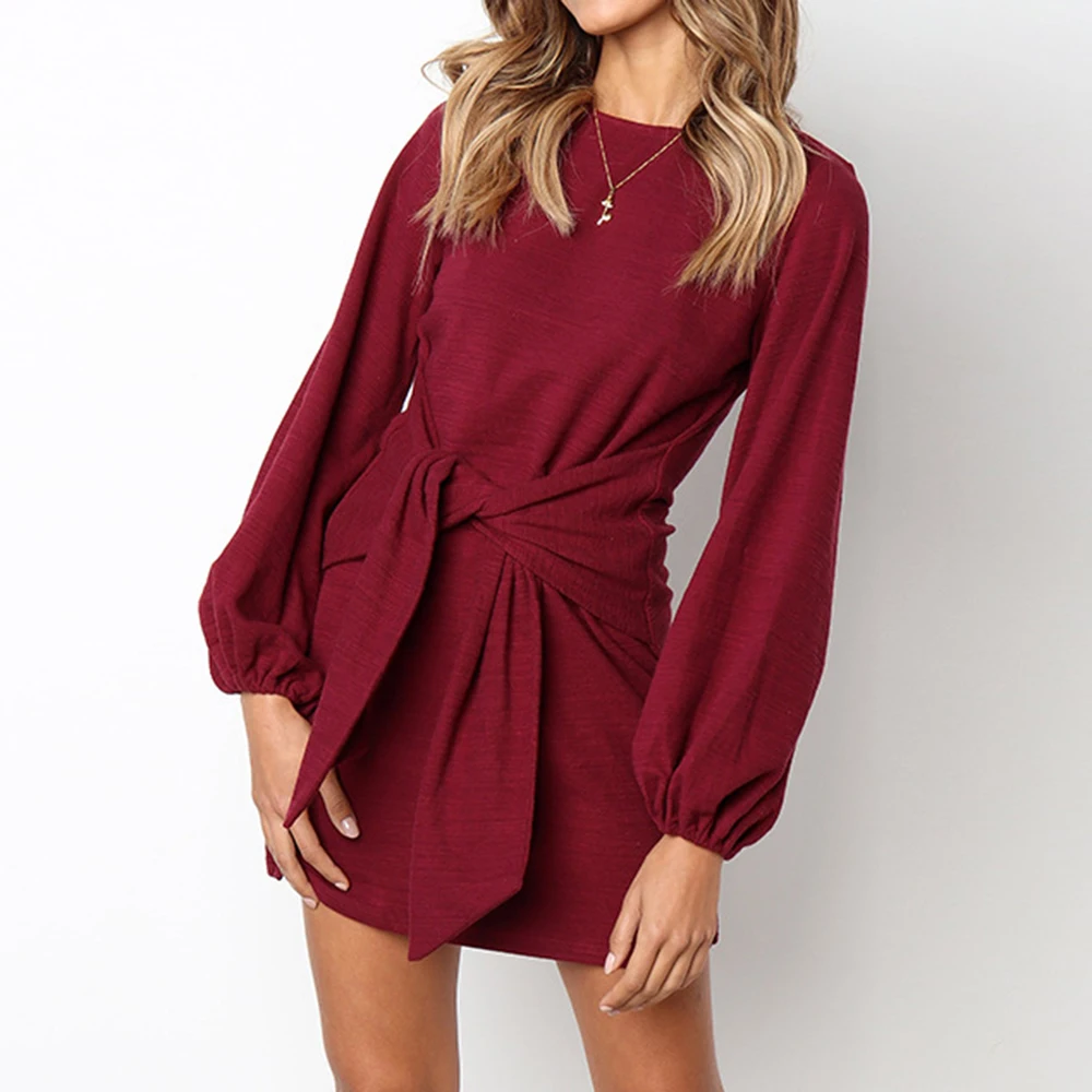 Kenancy Autumn New Style Women Fashion Long Sleeve Frenulum Sexy Casual Midi Slim Soild Dress