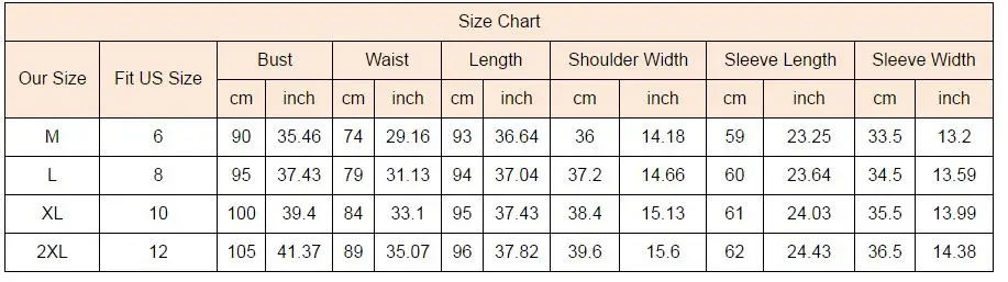 Our Size Fit US Size Bust Waist Length Shoulder Width Sleeve Length Sleeve Width
