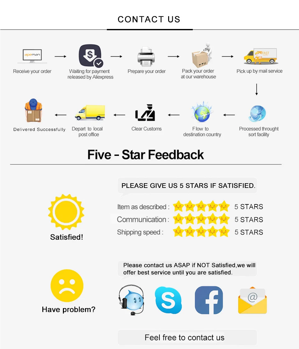 • If you did not receive the product within the guaranteed time( 45 days not including 2-5 day processing) you can request a refund or a reshipment.