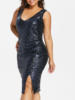 Kenancy Women Plus Size Sexy V Neck Sequined Sheath Dress Side Split Sparkly Party Tight Bodycon Dress Female Club Vestidos 5XL
