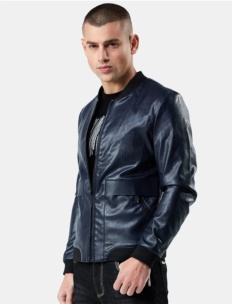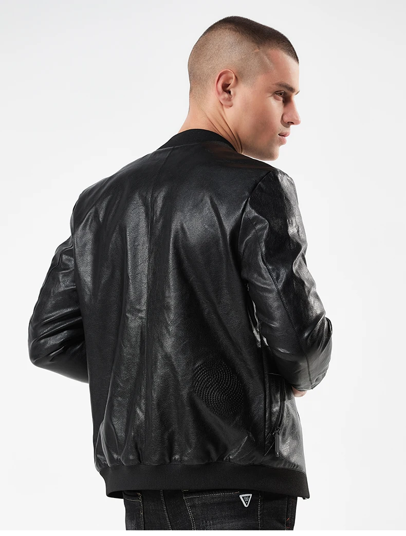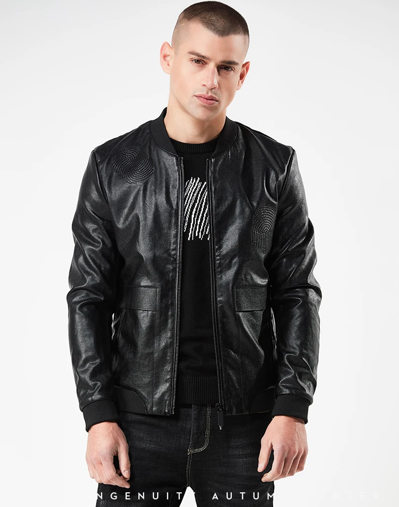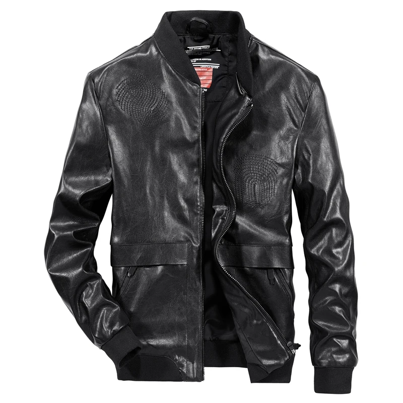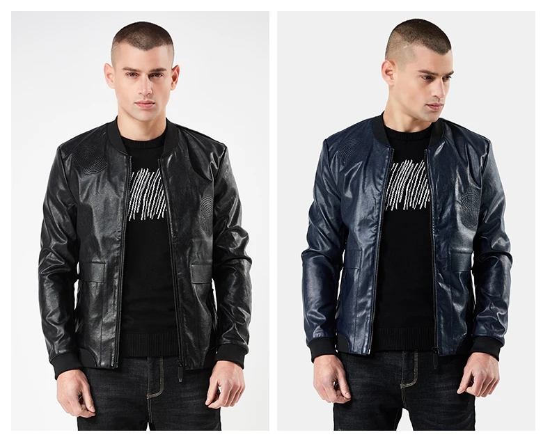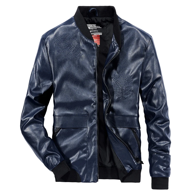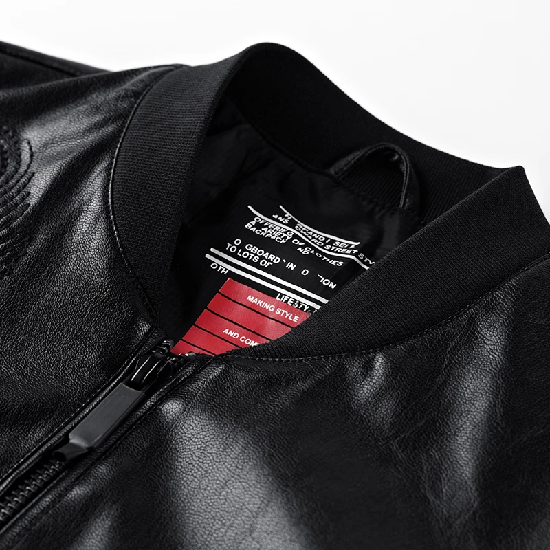 KENNTRICE Autumn Plus Size 4XL Faux Leather PU Jacket Coat Men Slim Fit Black Motorcycle Leather Jacket Embroidery Design