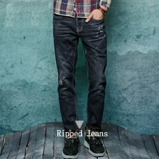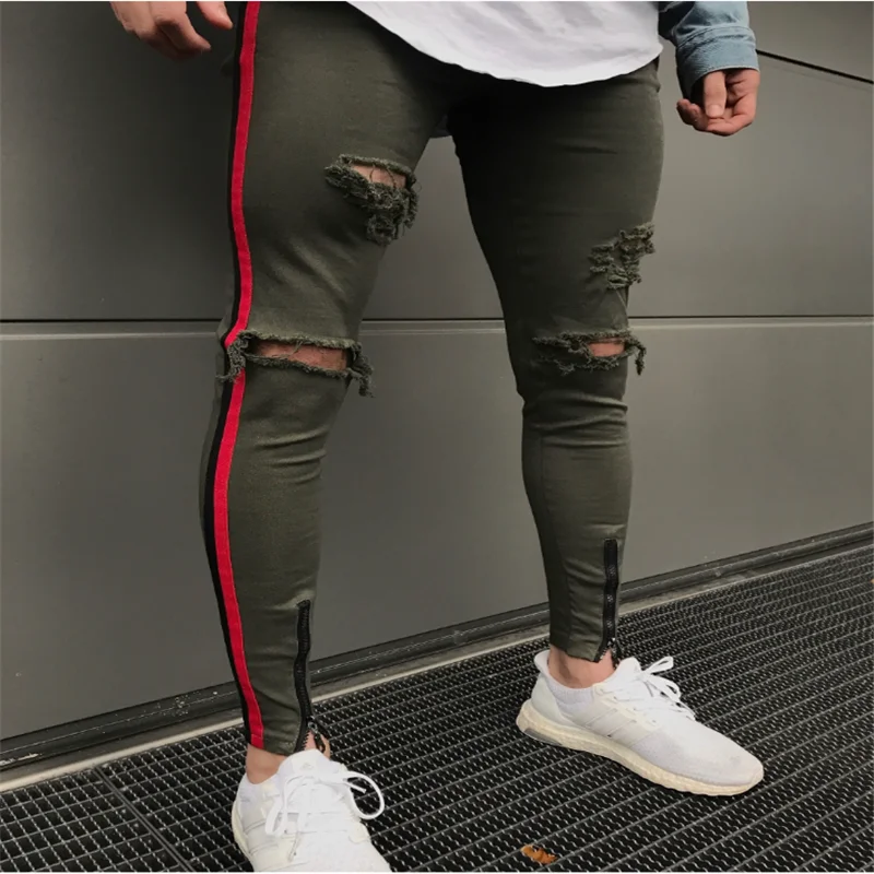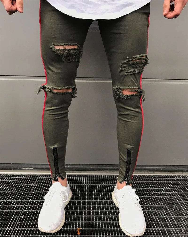 KENNTRICE Hiphop Fashion Destroyed Jeans Men`s Boyfriend Punk Slim Fit Men Zip Fly Biker Ripped Denim Jeans Street-Wear