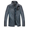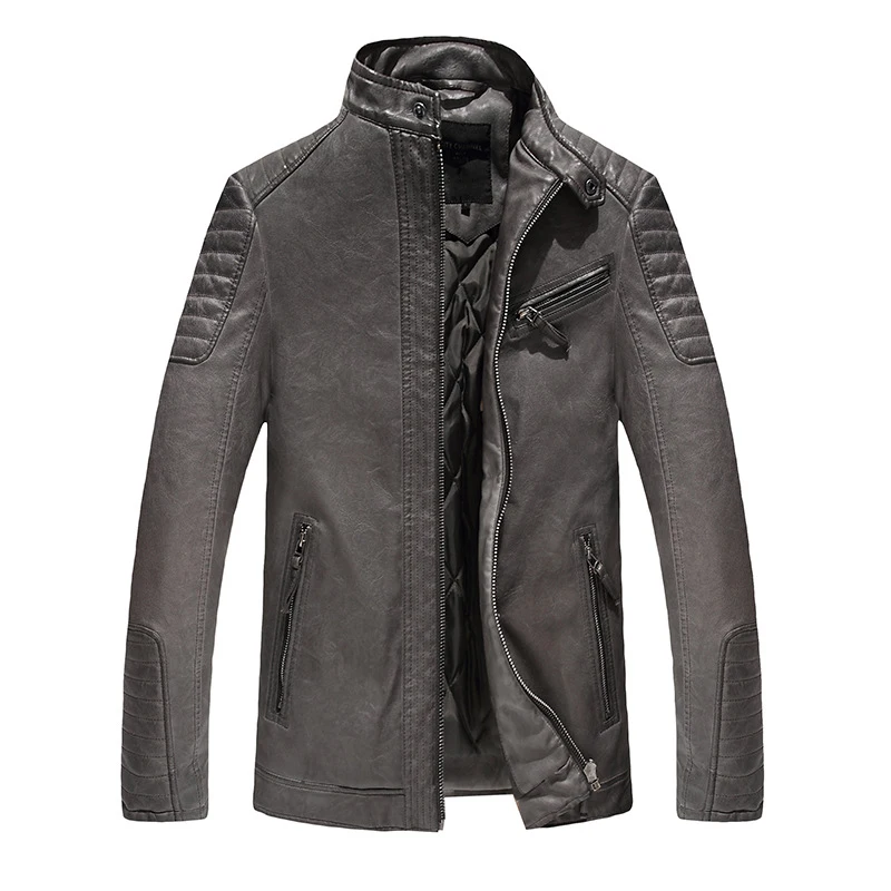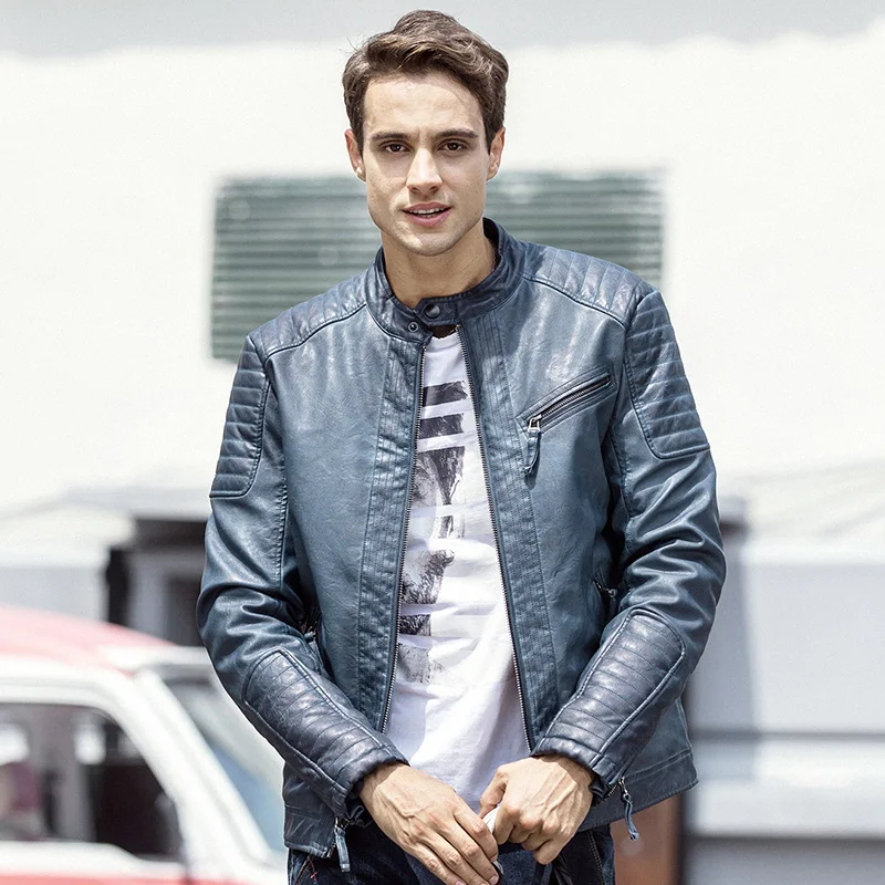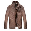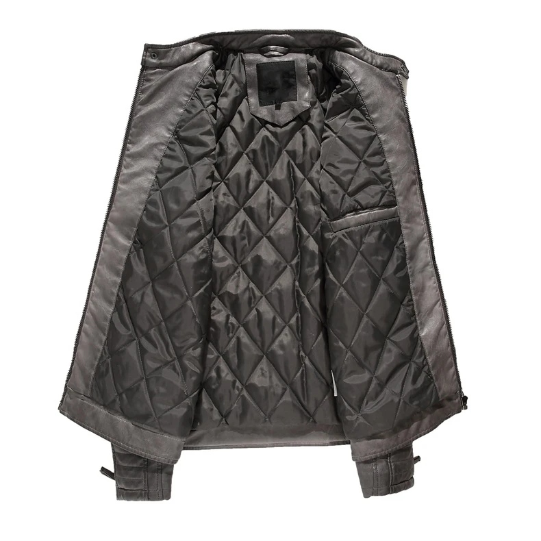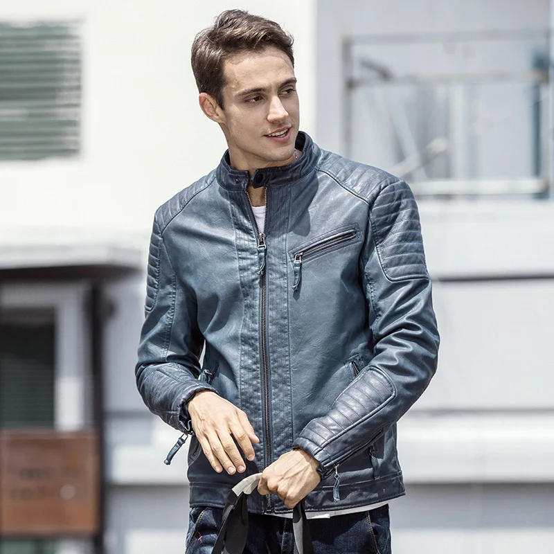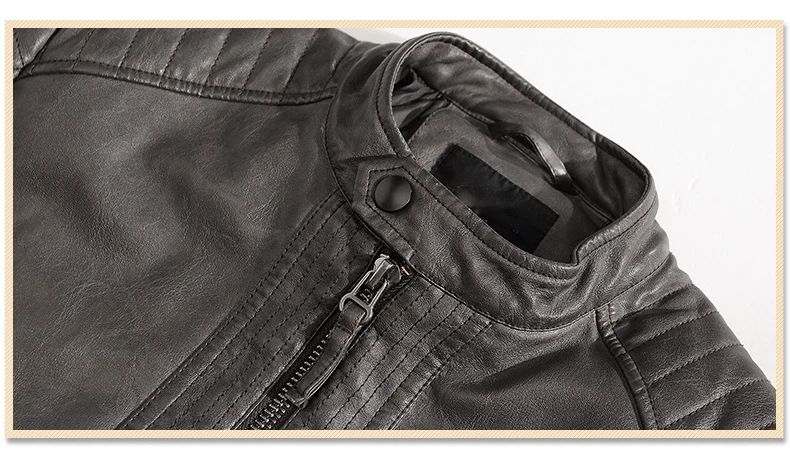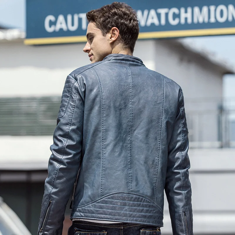 KENNTRICE Men Autumn Leather Jacket Vintage Motorcycle Jacket Slim Stand Collar Business Faux Leather Coat Men