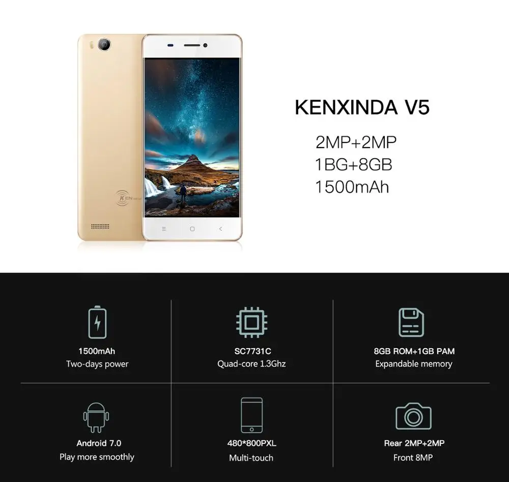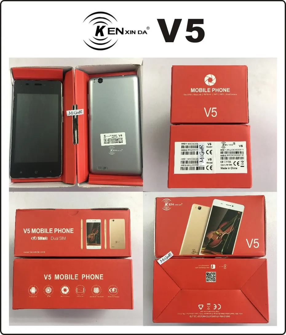 KENXINDA V5 Mobile Phone 4.0 Inch Android 7.0 Quad Core 1.2GHz 1GB RAM 8GB ROM 1500mAh 480X800 3G Dual Card Smartphone Stock