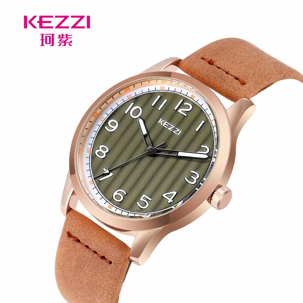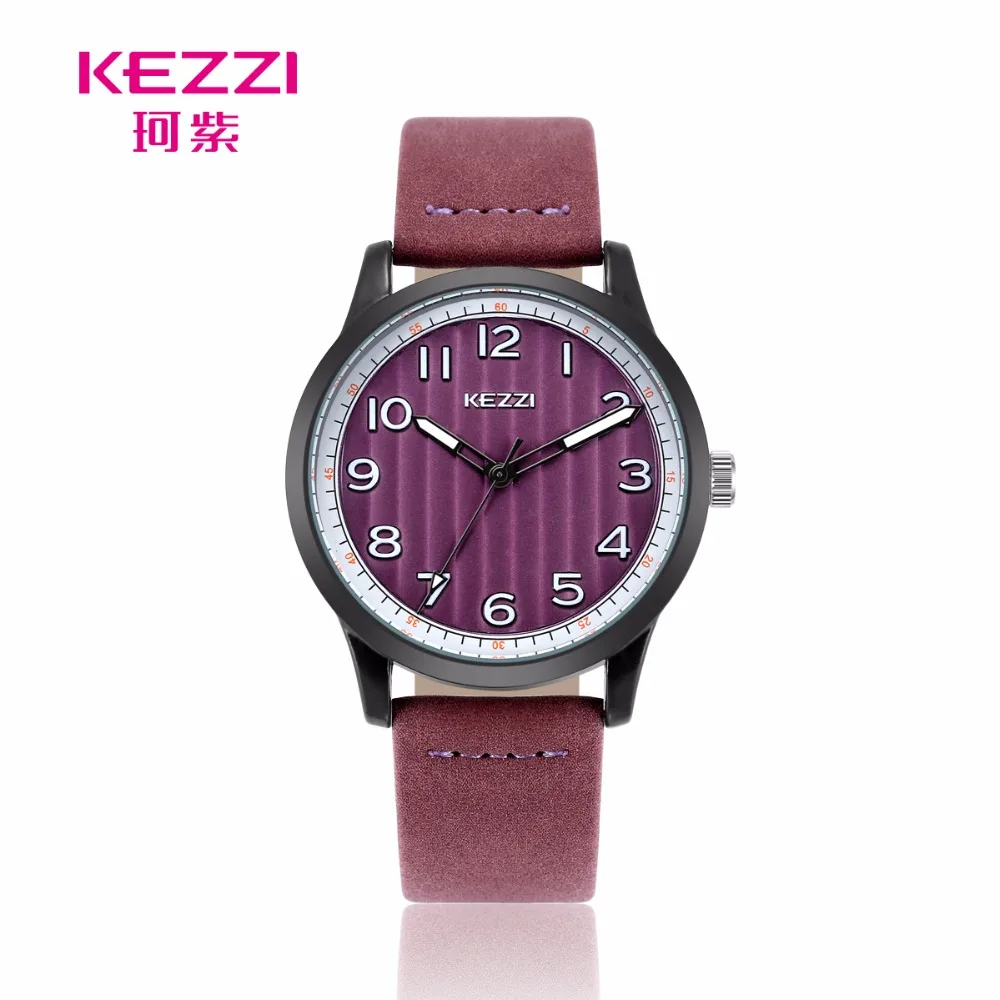 KEZZI Dress Quartz Watch Women Elegant Leather Strap Ladies Watches Stripe Dial Top Brand Luxury Clock Woman relojes mujer 2018
