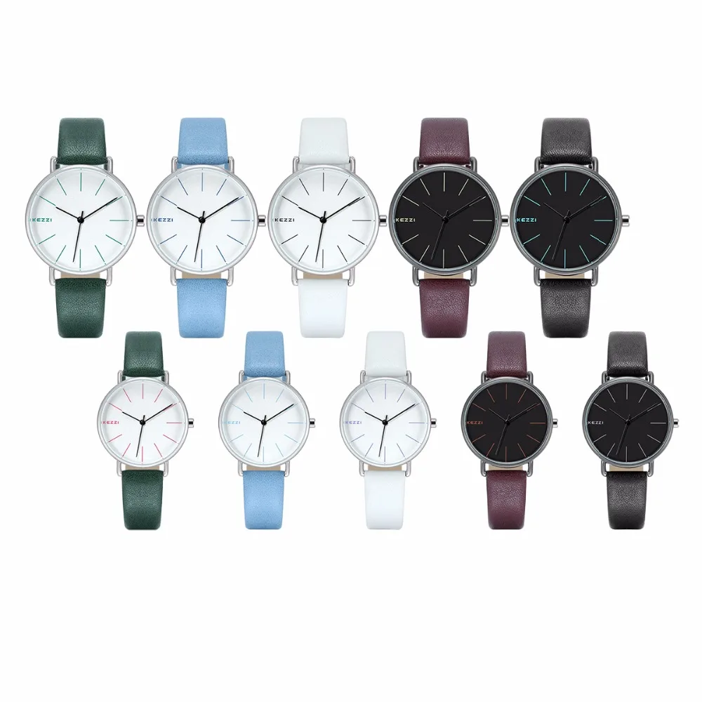 KEZZI Simple Quartz Wristwatches for Men Women Watch Fashion Leather Bracelet Waterproof Lover’s Watches Couple Clock bayan saat