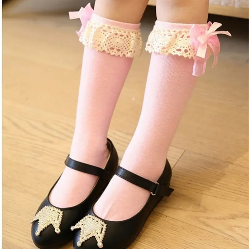 Kid Girls Socks Children’s Knee High Socks with Lace Baby Leg Warmers Cotton Princess Style