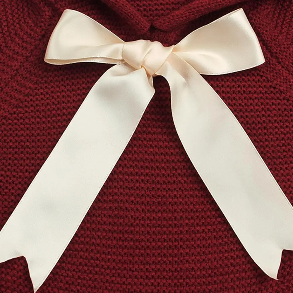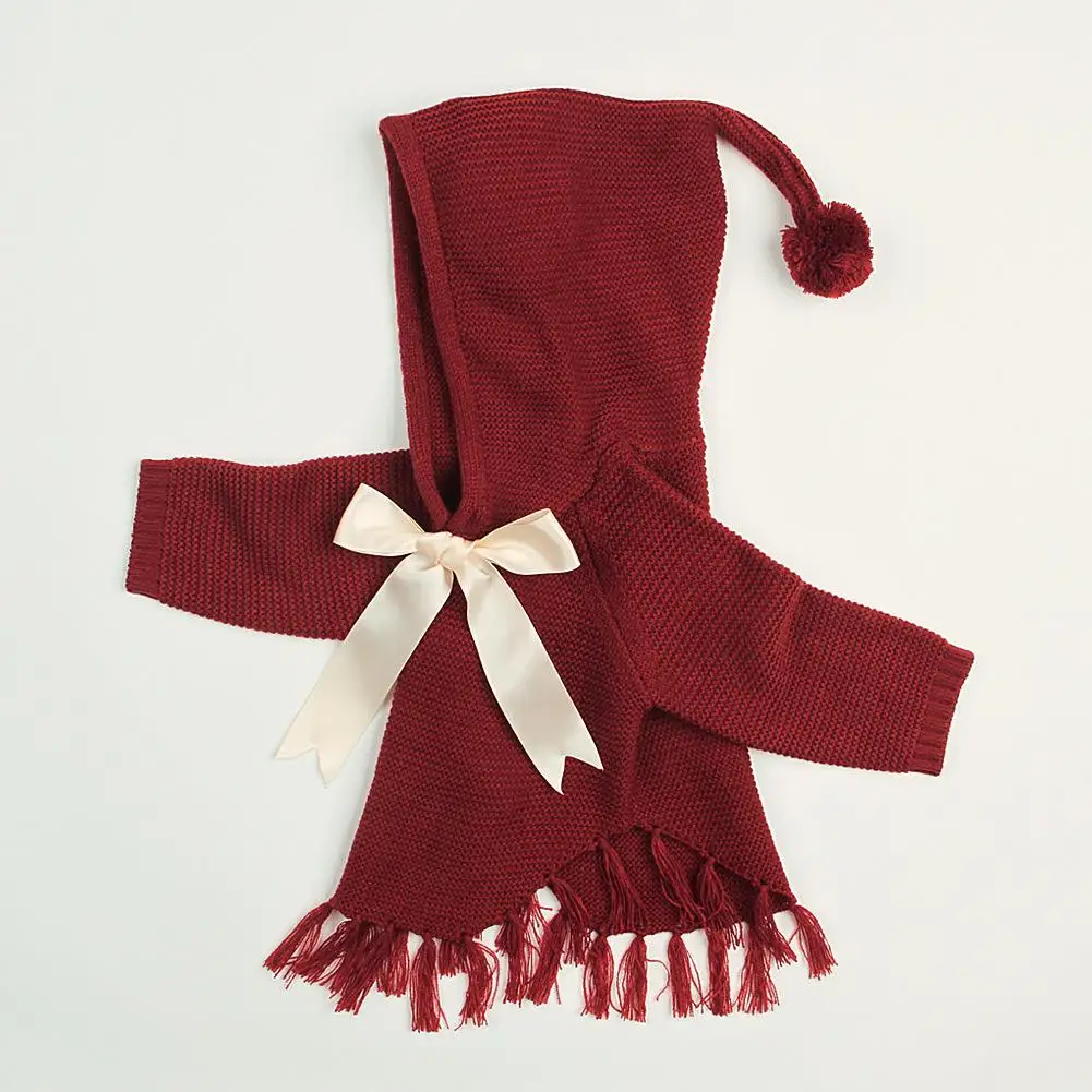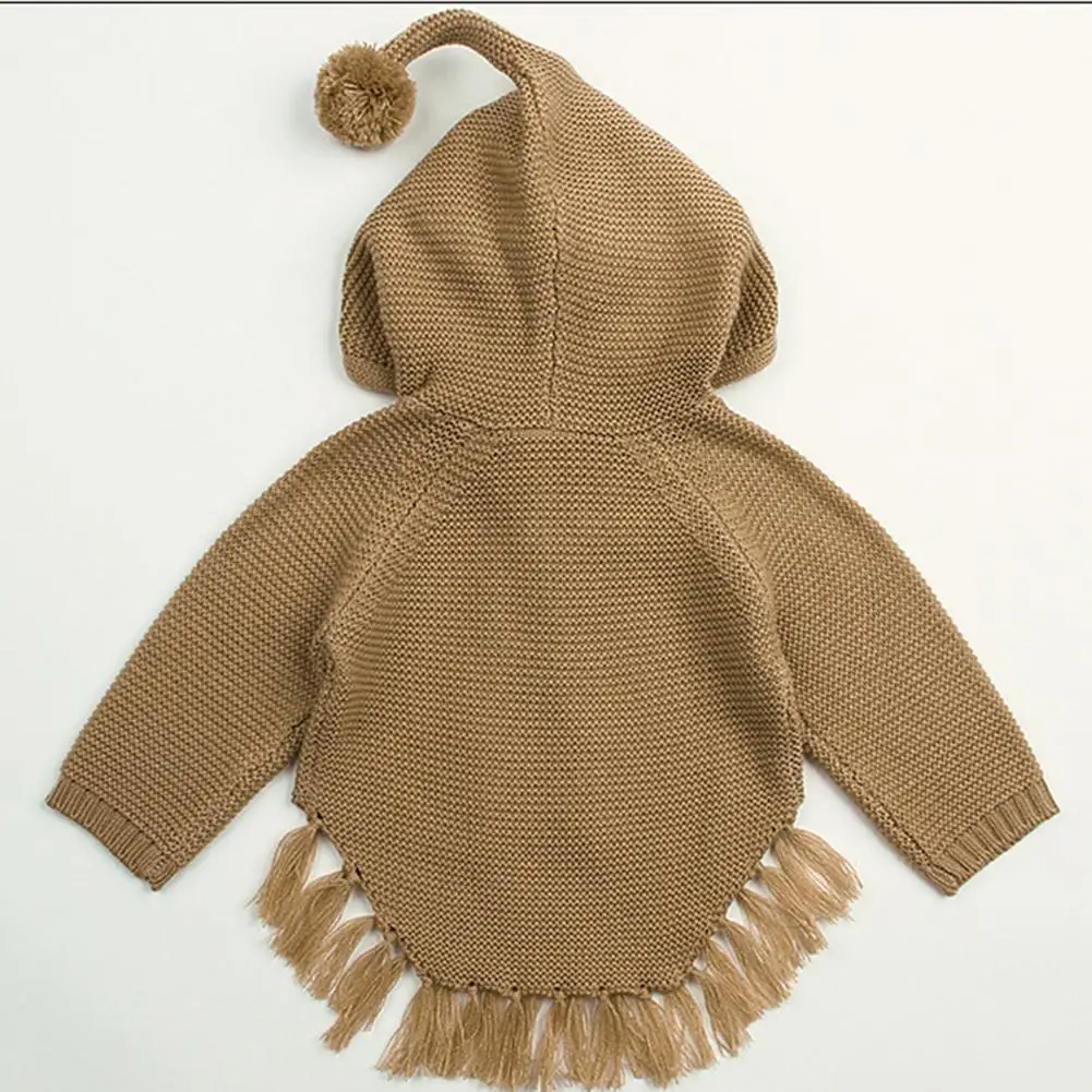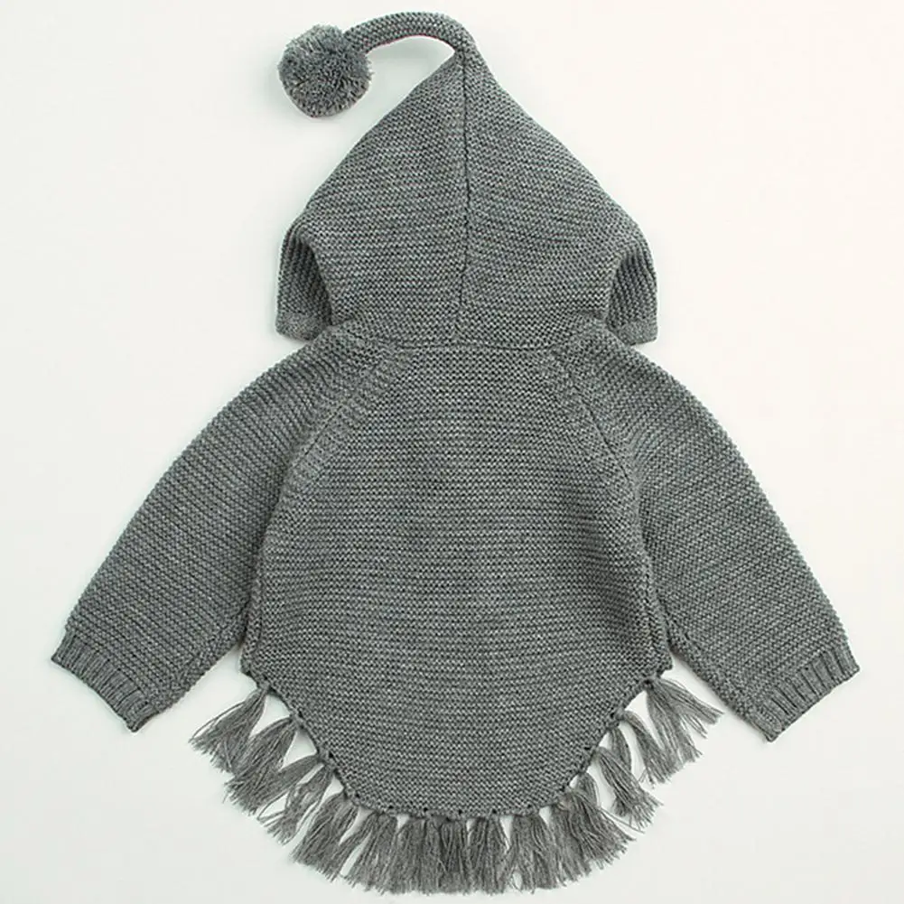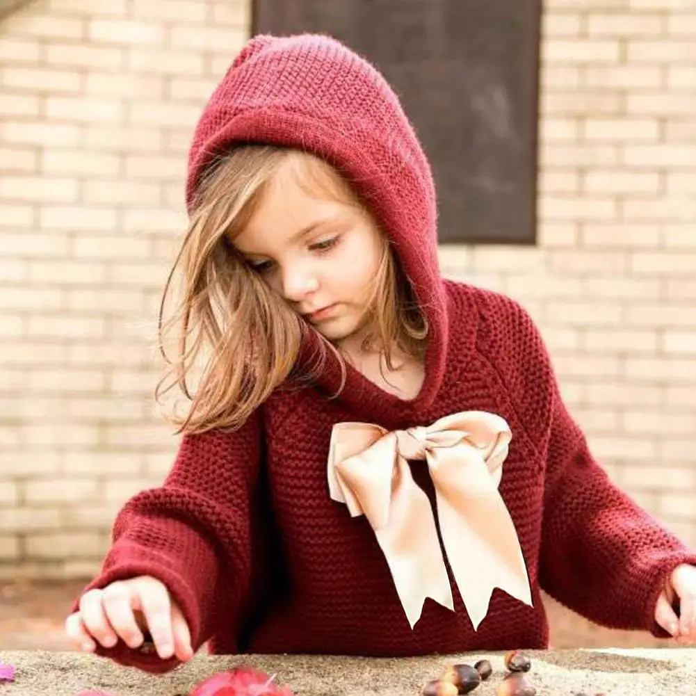 Kidlove Babygirls Cute Bowknot Sweaters Pullover Long Sleeve Tassels Solid Hooded Sweaters Irregular Hem Outerwear Knitwear SAN0