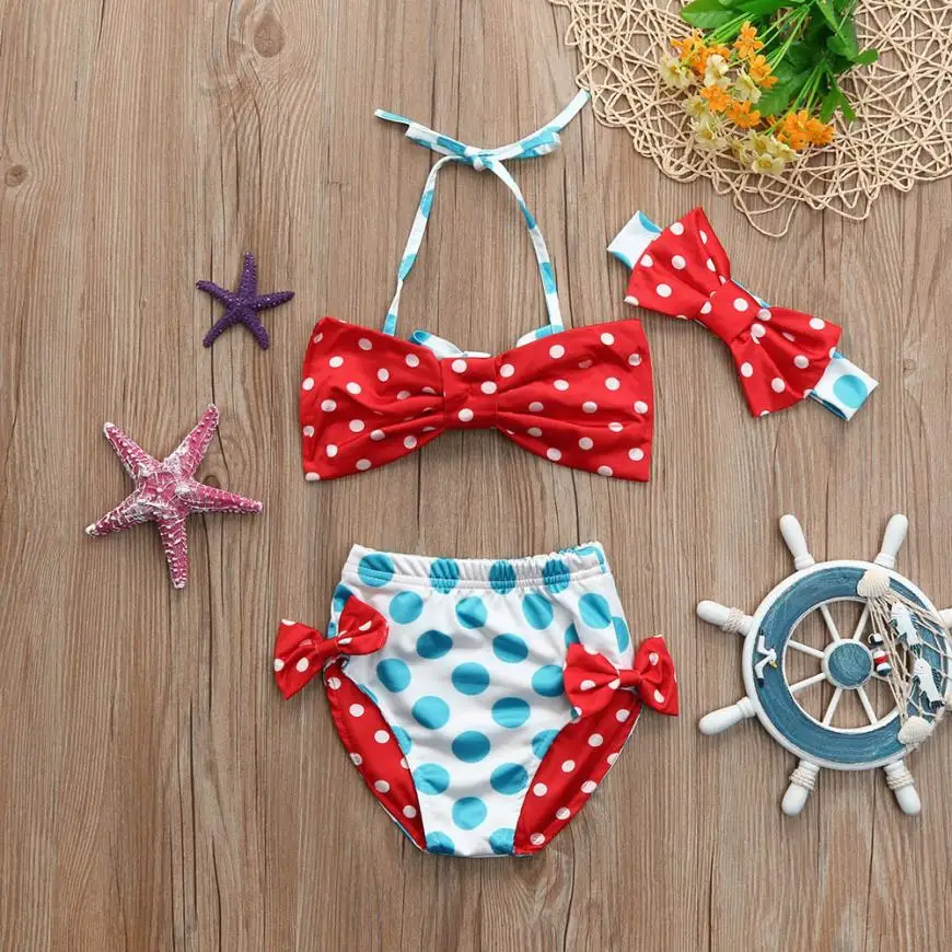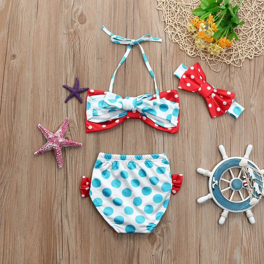 Kids Baby Girls Swimwear Dots Bowknot Straps Swimsuit Bikini 2018 New Summer Girls Bathing Suit Children Swimwear 6 Months~4y