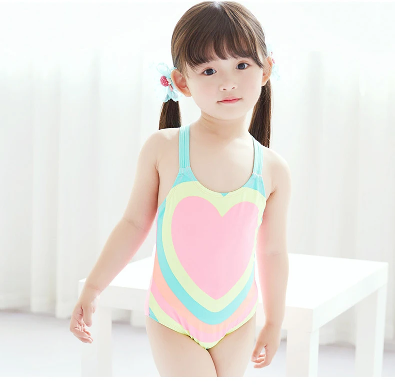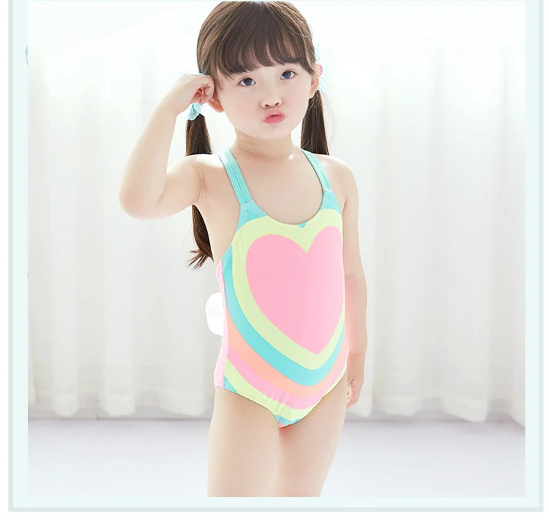 Kids Bathing Suits Girls One Piece Heart Printed Bikini 2018 Children Swimwear for Girls Infant Swim Suit Girl Backless Bikini