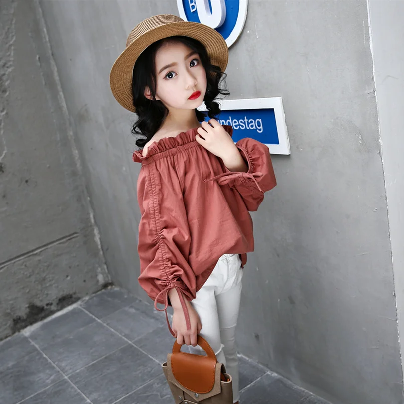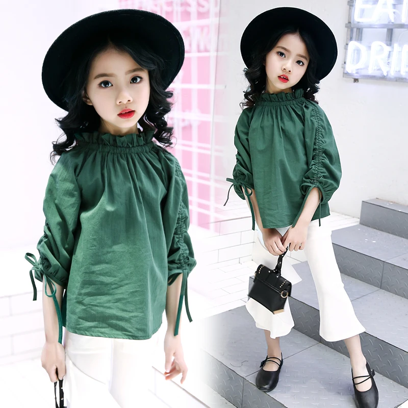 Kids Blouse Girl Cotton Solid Blouses for Girls 2018 Fashion Autumn Full Sleeves Shirts for Girl Sweet Children Clothing 7bs022