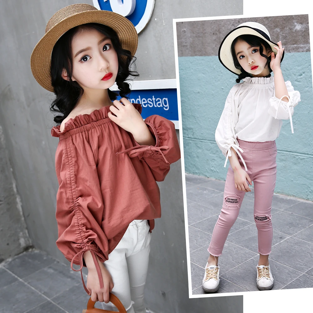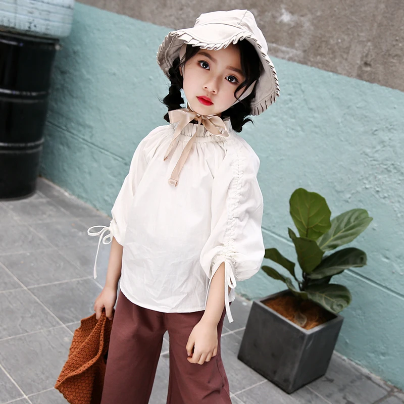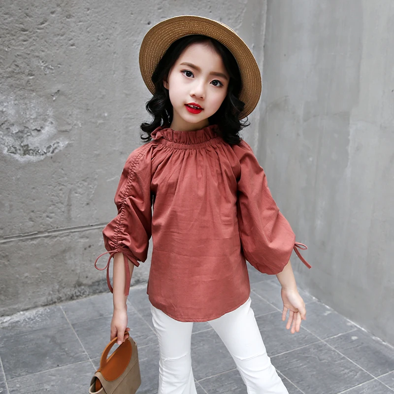 Kids Blouse Girl Cotton Solid Blouses for Girls 2018 Fashion Autumn Full Sleeves Shirts for Girl Sweet Children Clothing