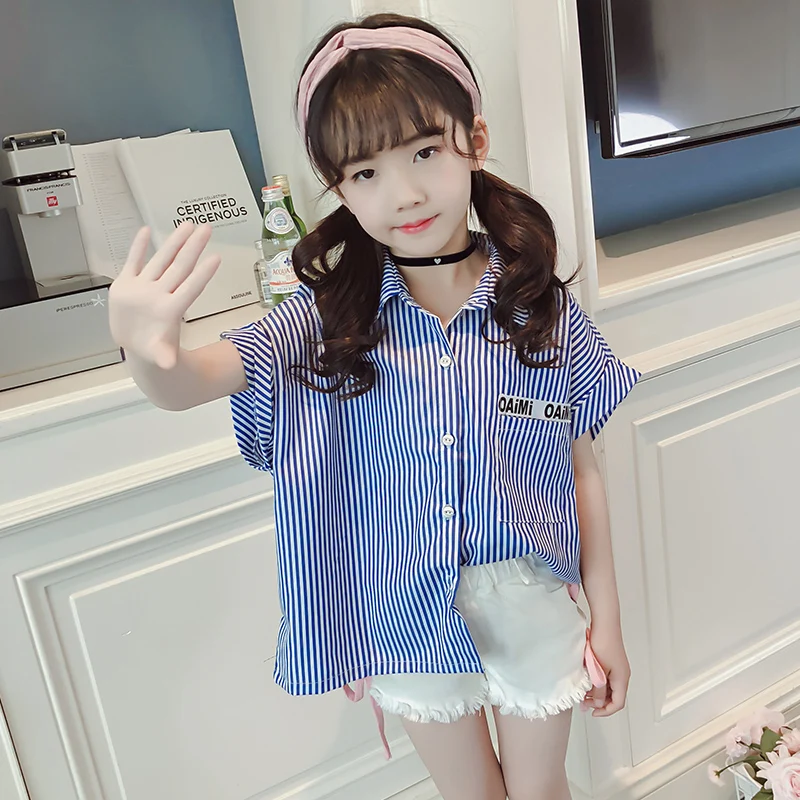Kids Blouse Girl Cotton Striped Blouses for Girls 2018 New Summer Short Sleeves Shirts for Girl Sweet Children Clothing 7bs008