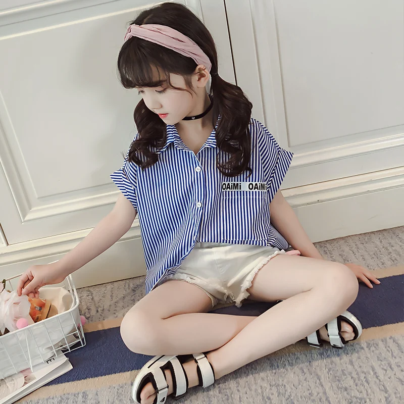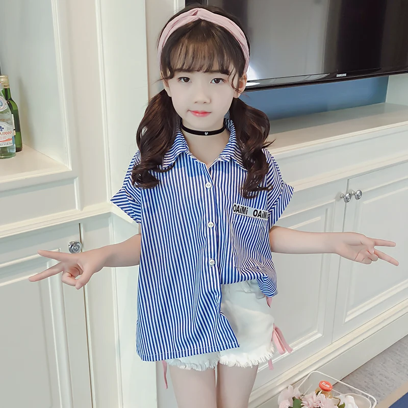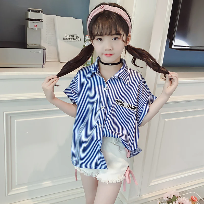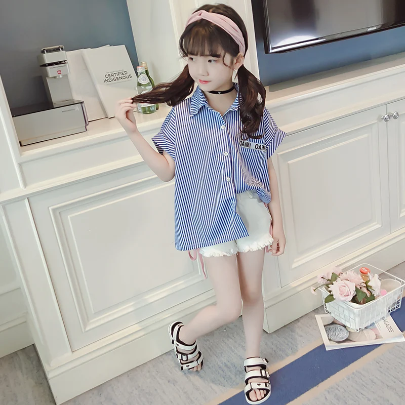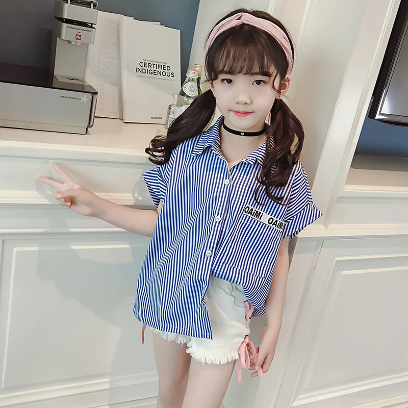 Kids Blouse Girl Cotton Striped Blouses for Girls 2018 New Summer Short Sleeves Shirts for Girl Sweet Children Clothing
