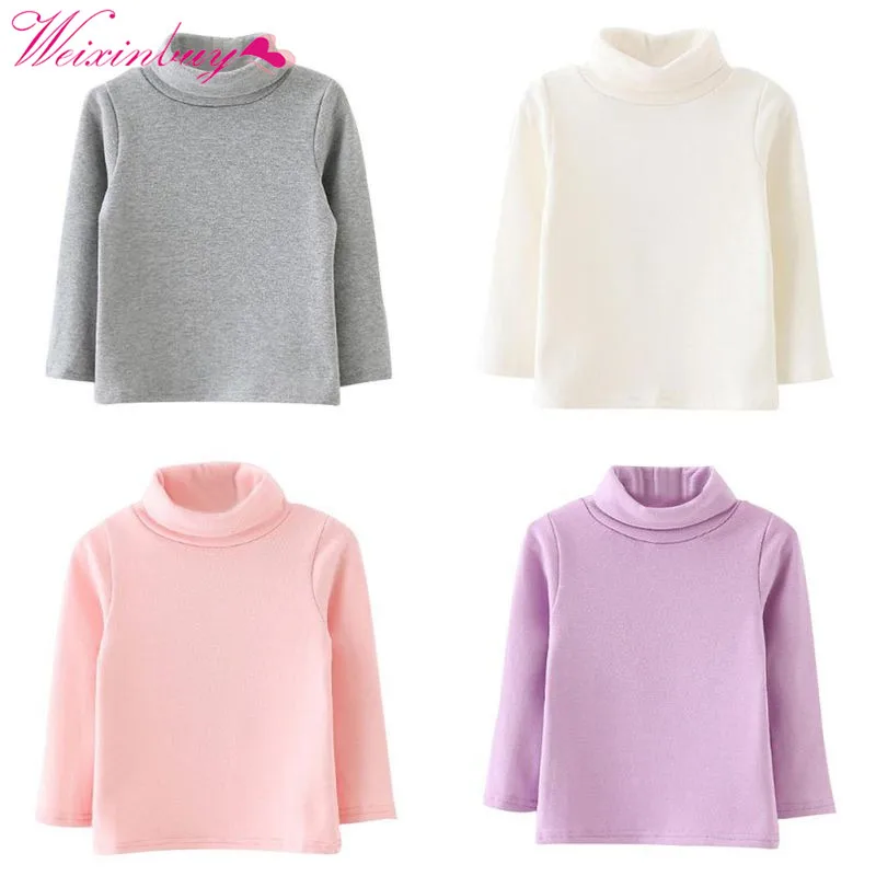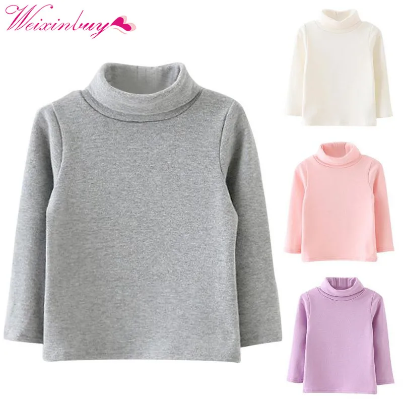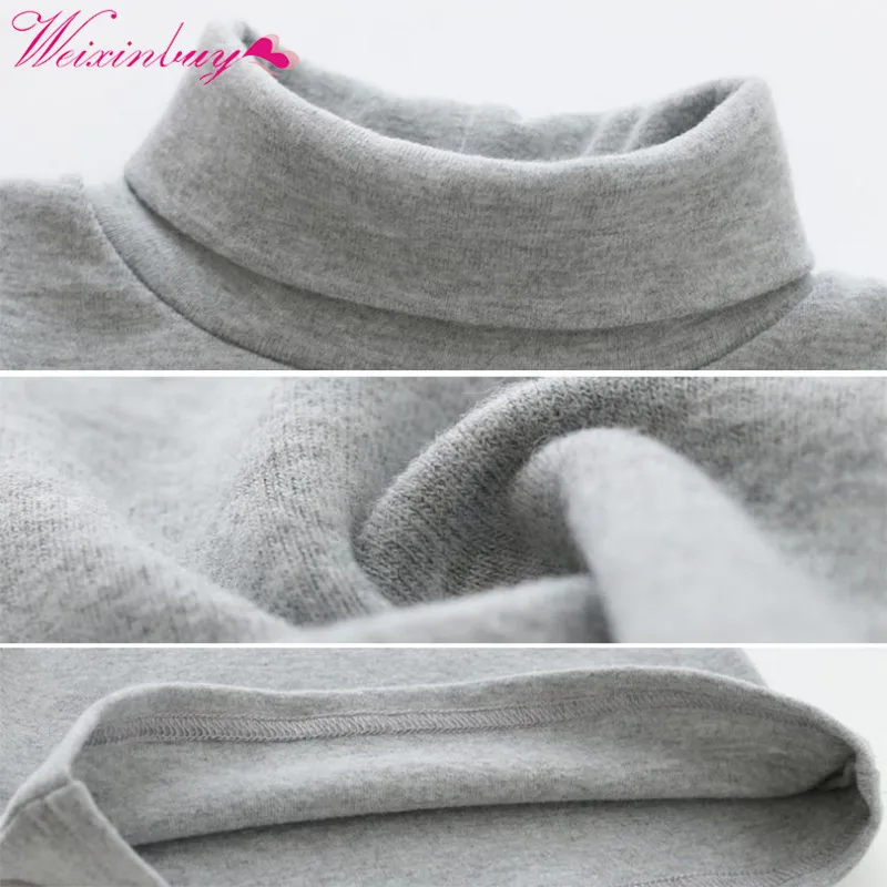 Kids Boys Girls Long-sleeved High Neck Sweater Base Warm Cotton Shirt Winter