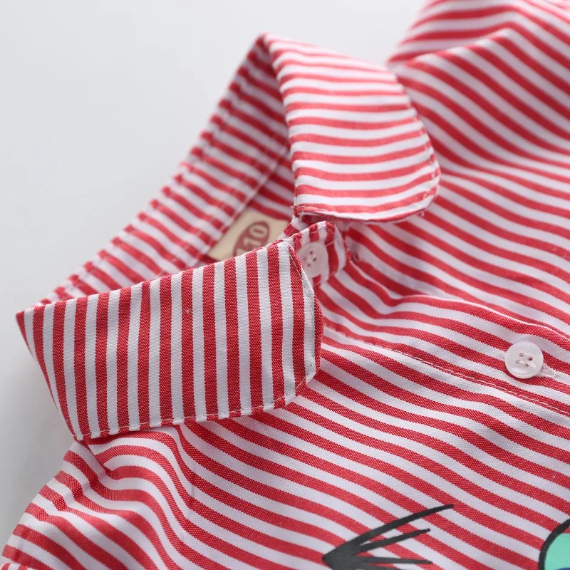 Kids Boys Girls Shorts Tops Long Sleeve Clothes Shirts Lapel Embroidery Cute Baby Clothing