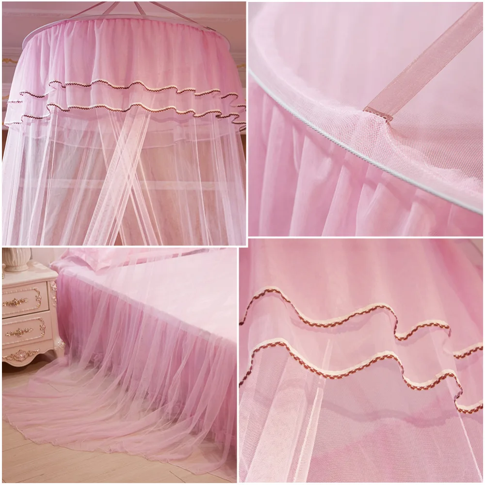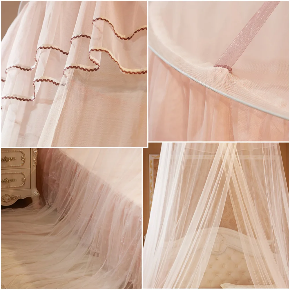 Princess Hanging Round Lace Canopy Bed Netting Comfy Kids Child Hung Dome Mosquito Net for Crib Twin Full Queen Bed