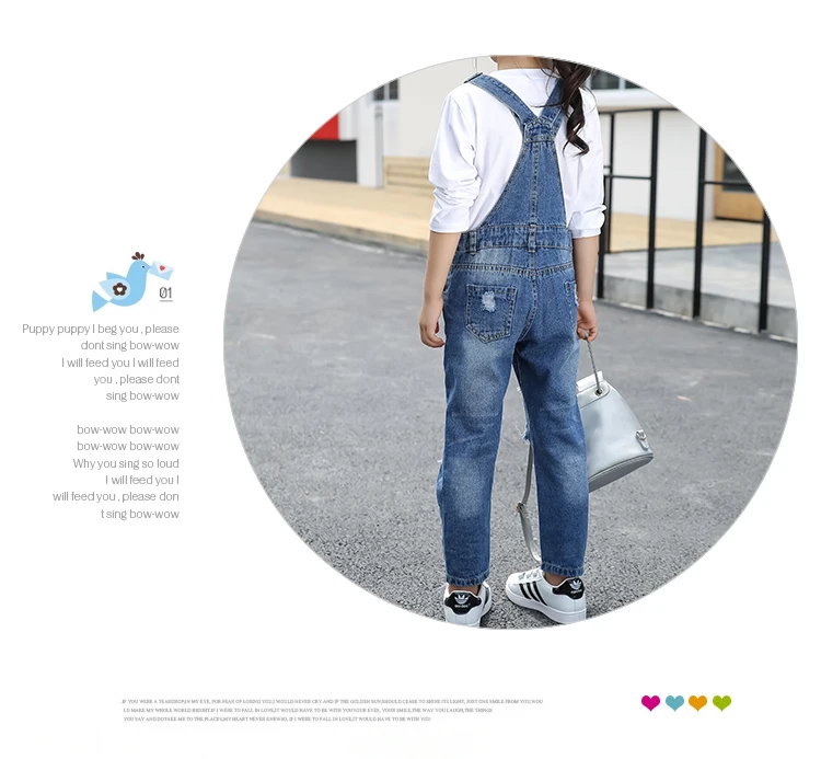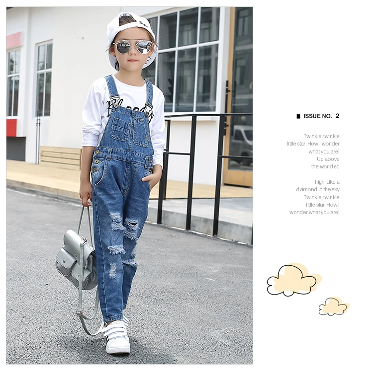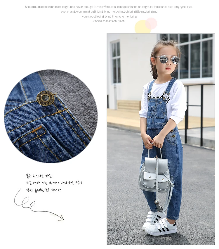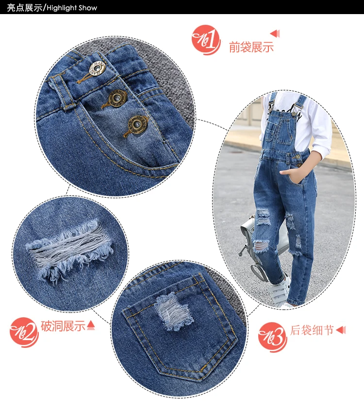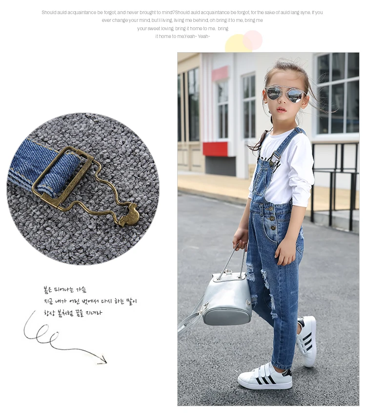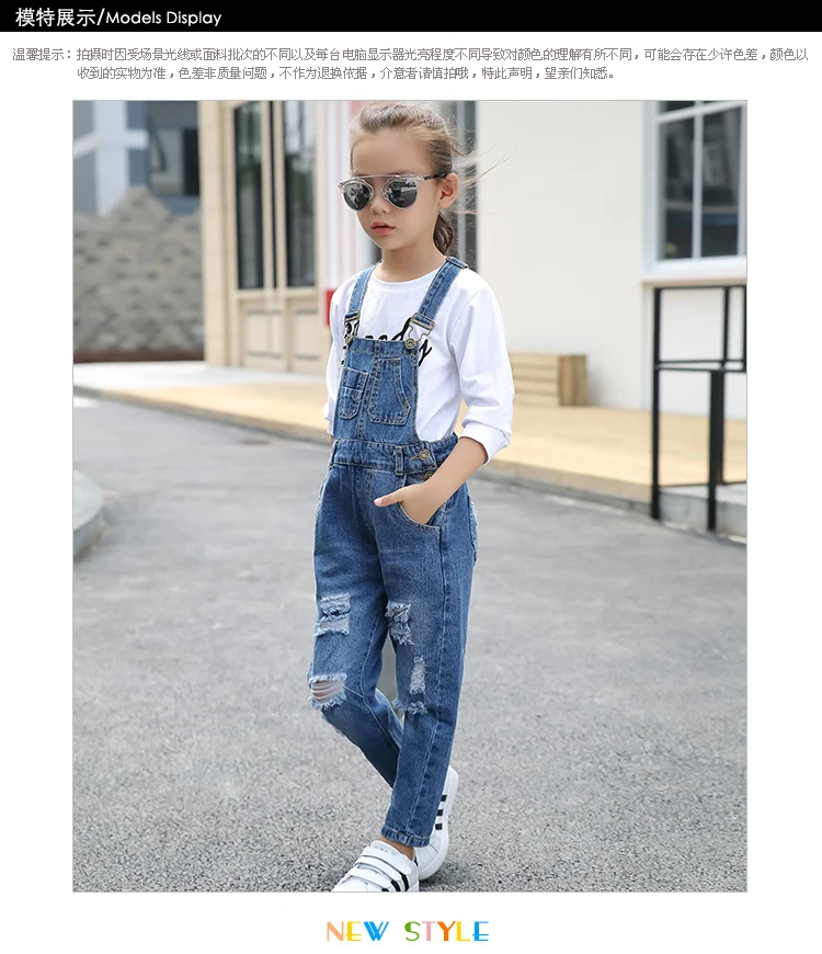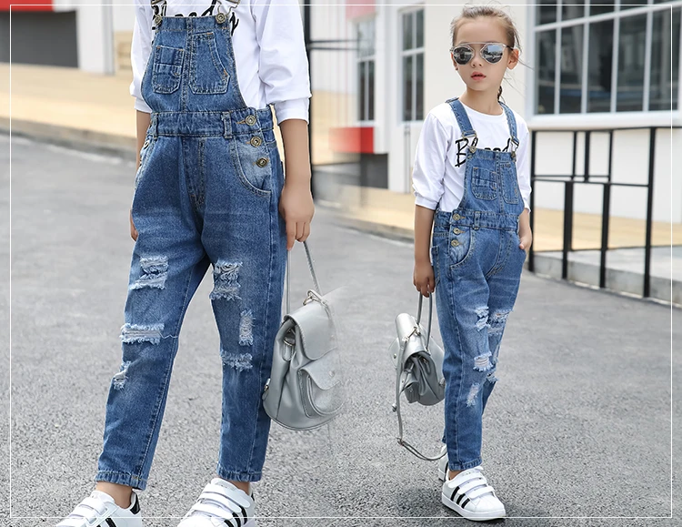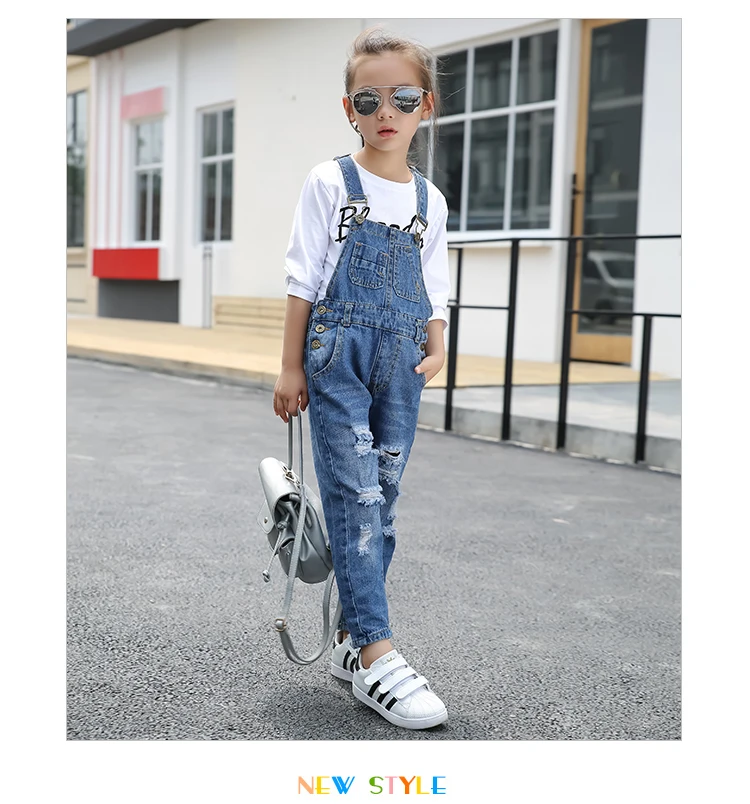 Kids denim overalls 2018 spring big girls cowboy strap hole pants children Korean belt trousers 5 to 16 years baby jeans clothes