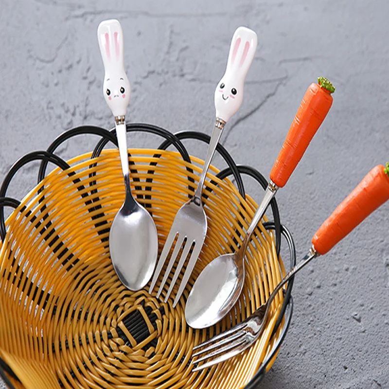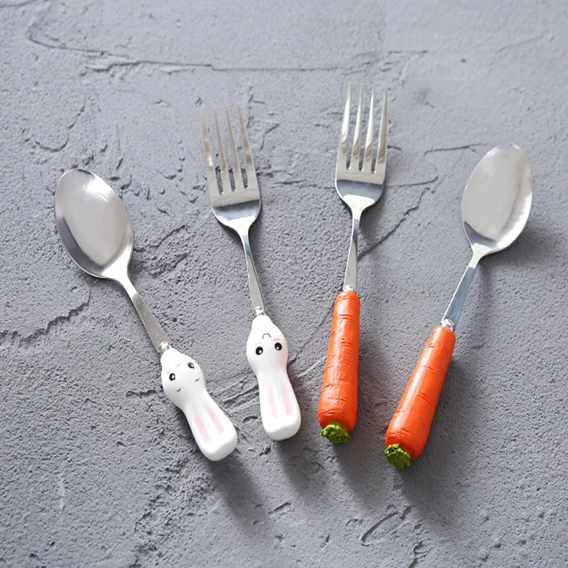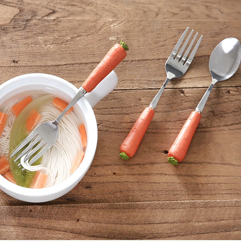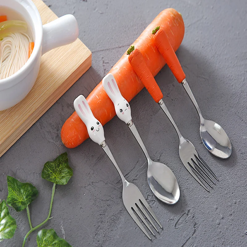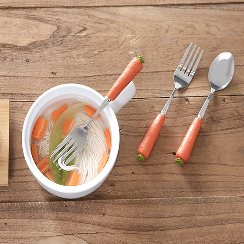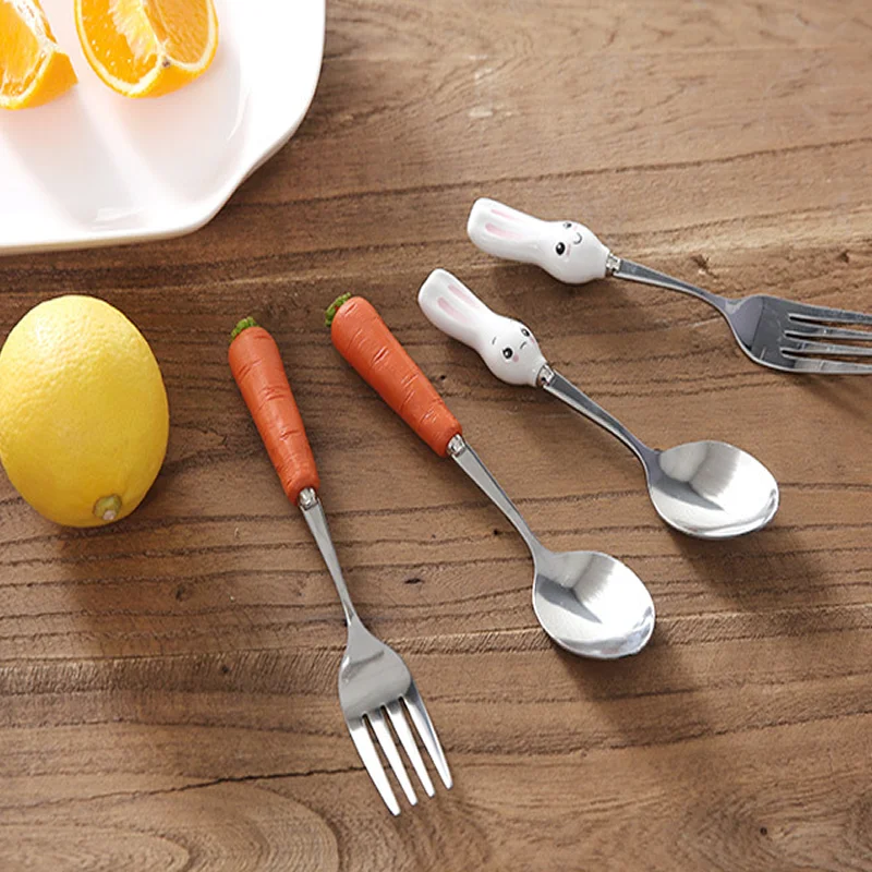 Kids equipment baby tableware cutlery infant food feeding spoon fork radish cartoon shape tableware children’s tableware