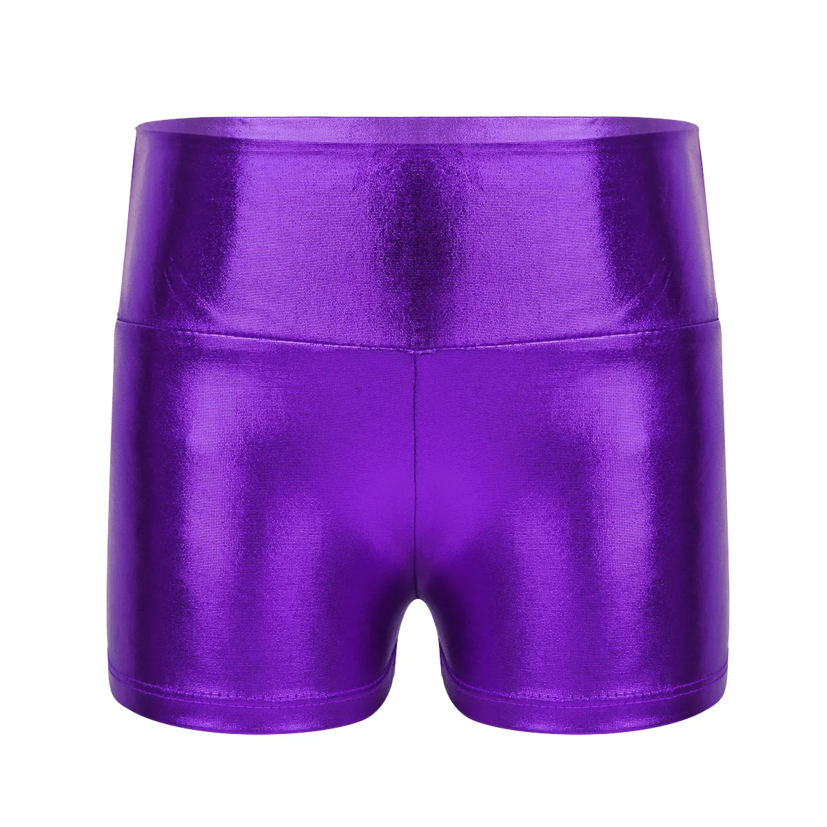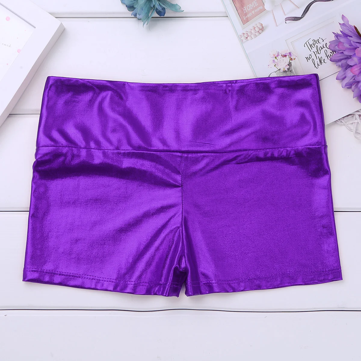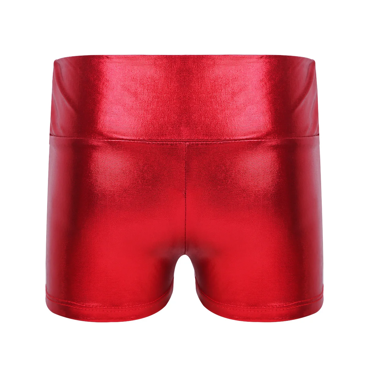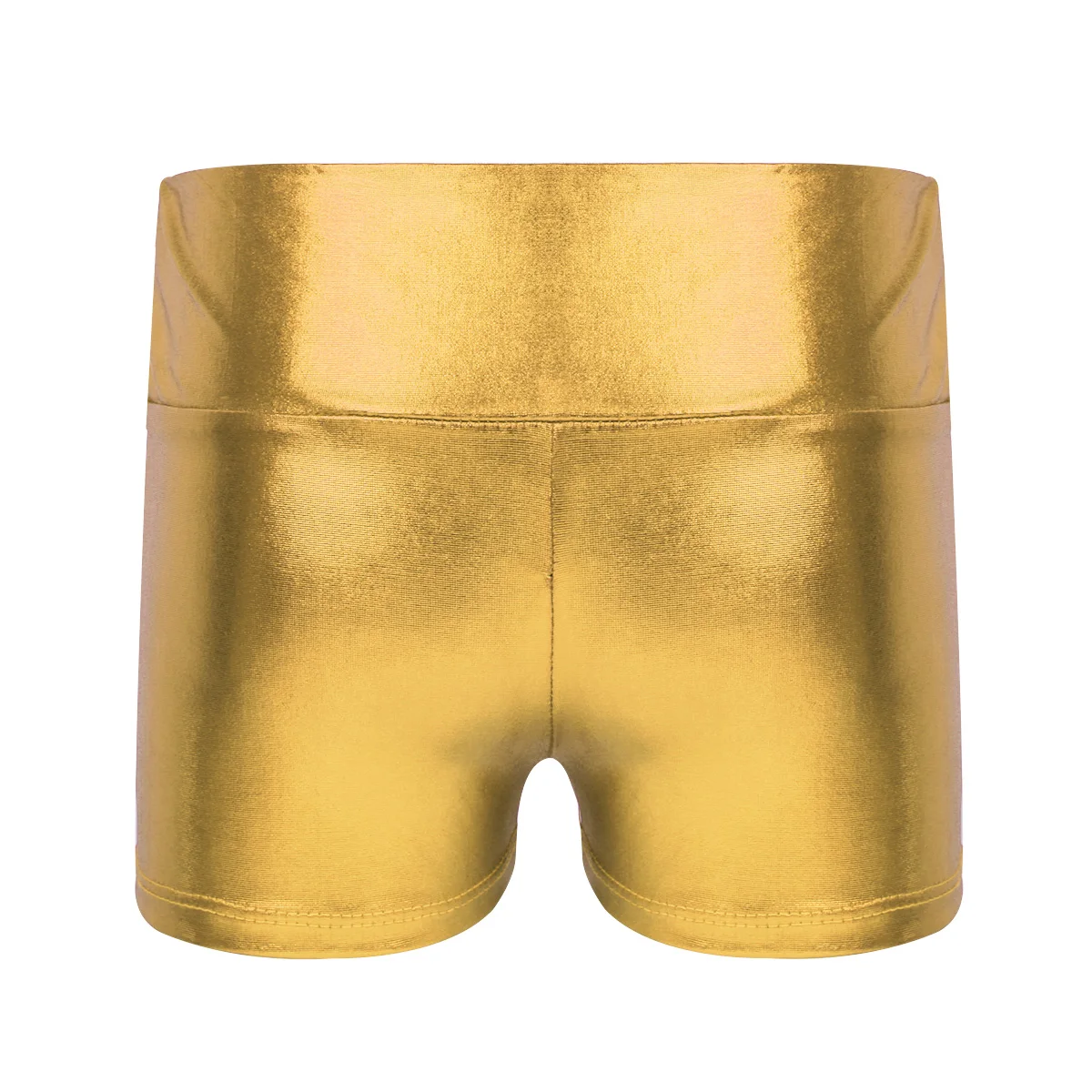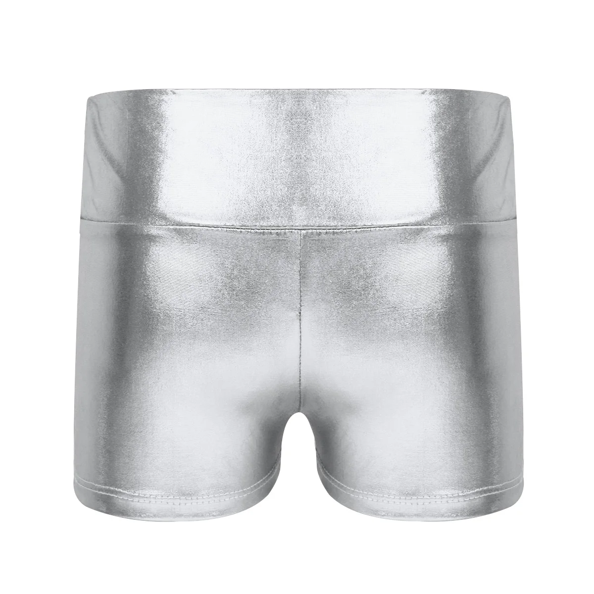 Kids Girls Children’s Clothing Metallic Shiny High Waist Dance Shorts Bottoms Activewear for Gymnastic Workout Summer Shorts