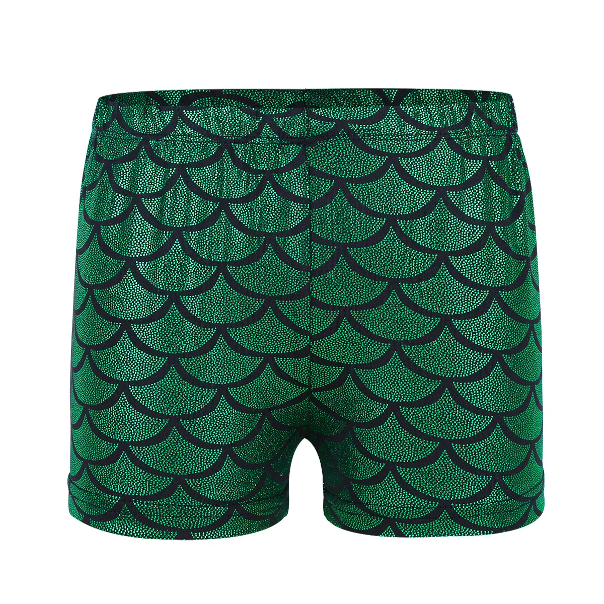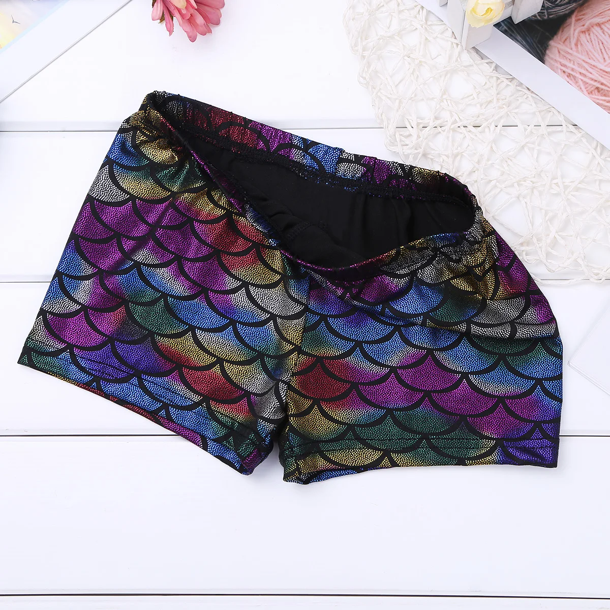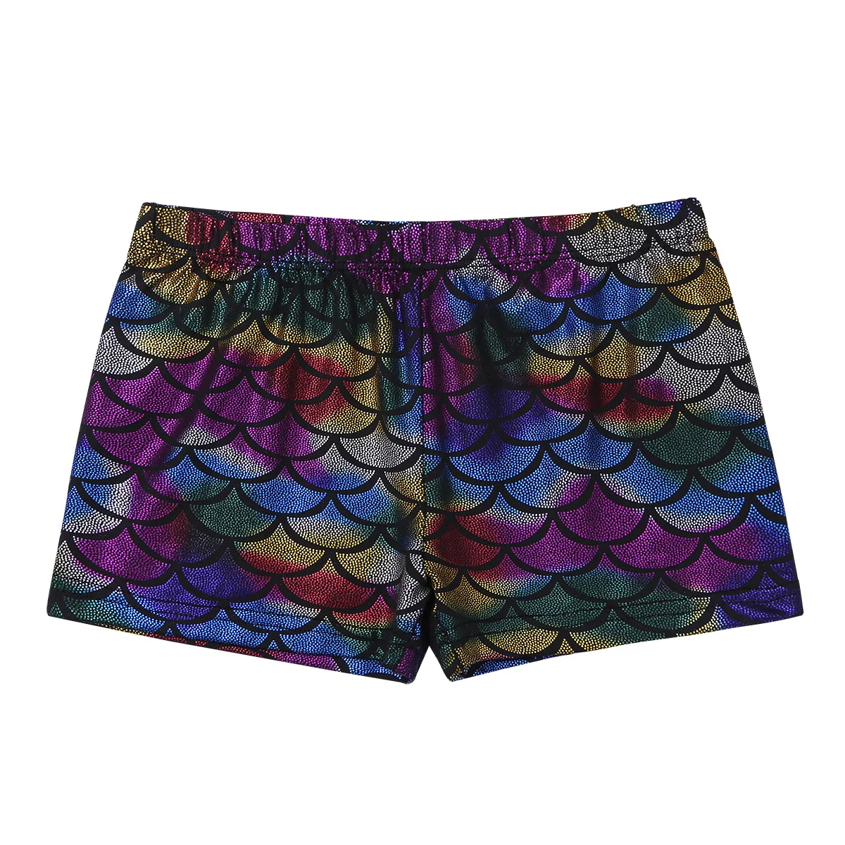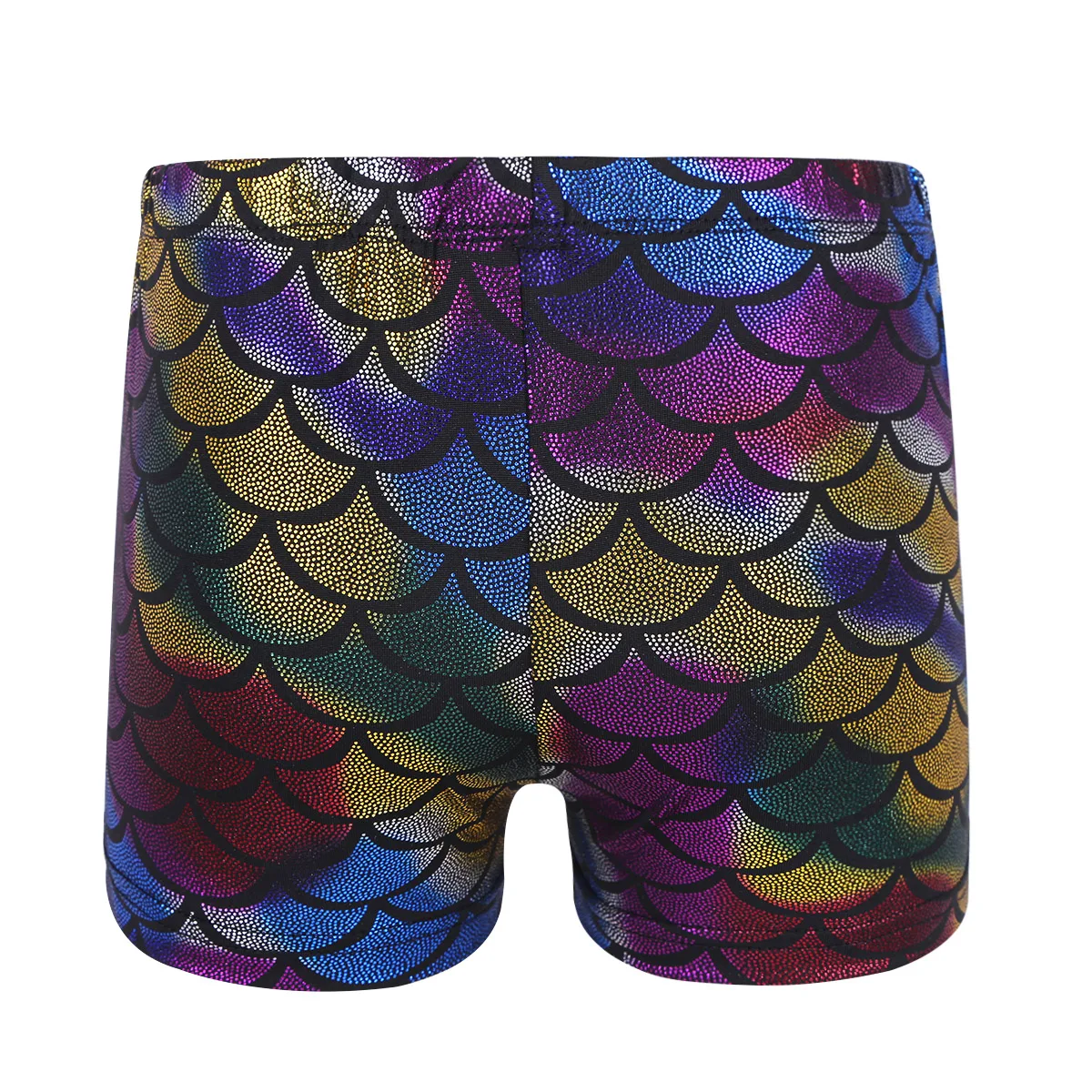 Kids Girls Shiny Summer Beach Shorts Mermaid Scales Printed Dance Shorts Bottoms for Gymnastic Workout Formal Dance Shorts
