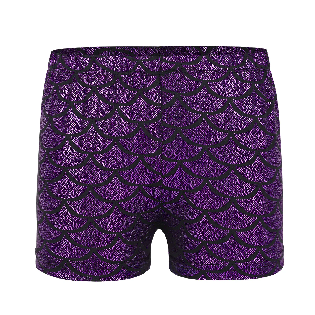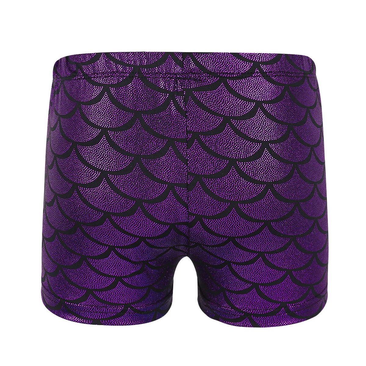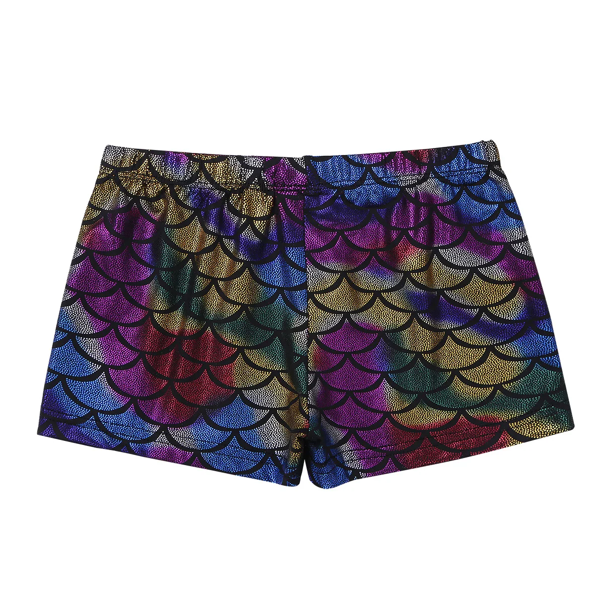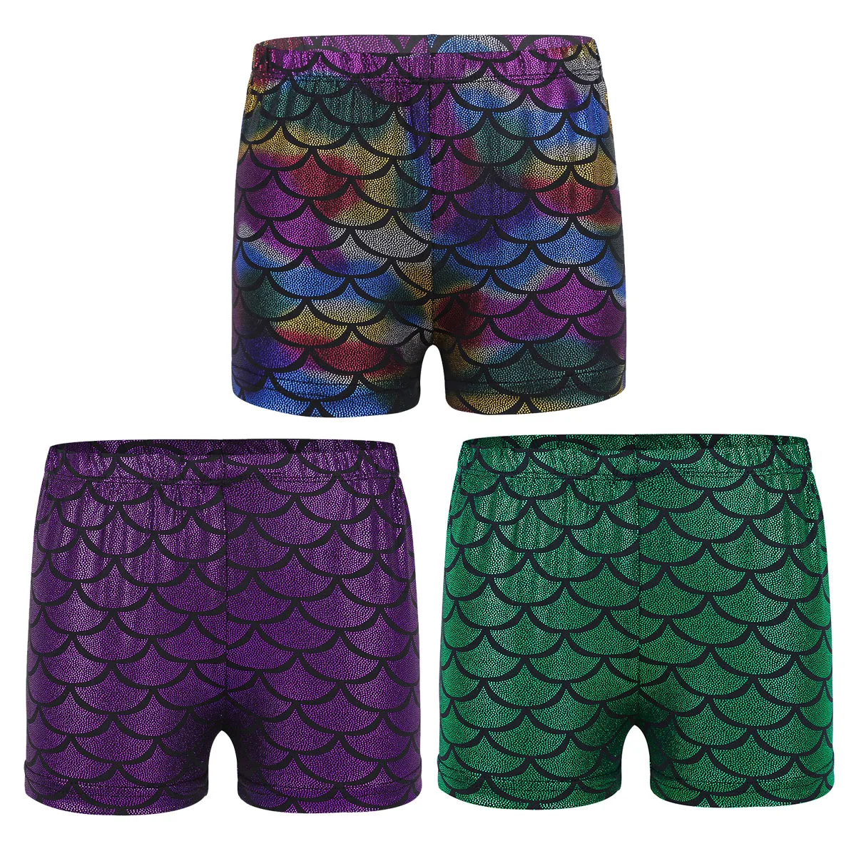 Kids Girls Shiny Summer Beach Shorts Mermaid Scales Printed Dance Shorts Bottoms for Gymnastic Workout Formal Dance Shorts