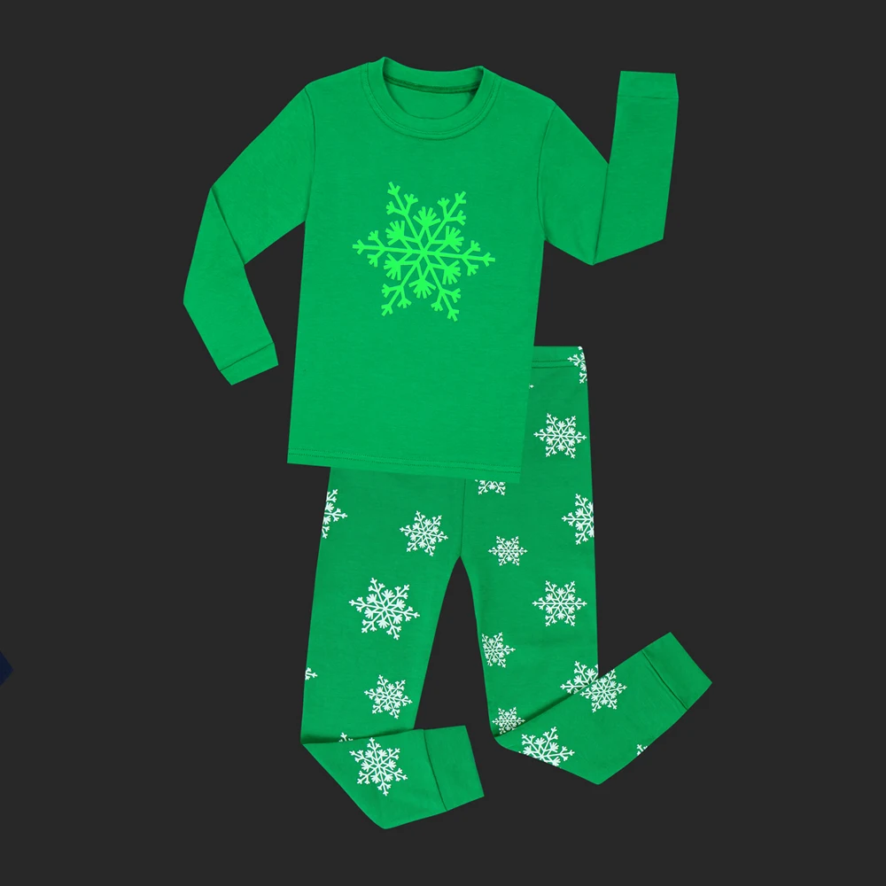 Kids Glow in Dark Pajamas Sets for 2-8 years Children Merry Christmas Sleepwear Boys Girls Snowflake Pyjamas Pijamas
