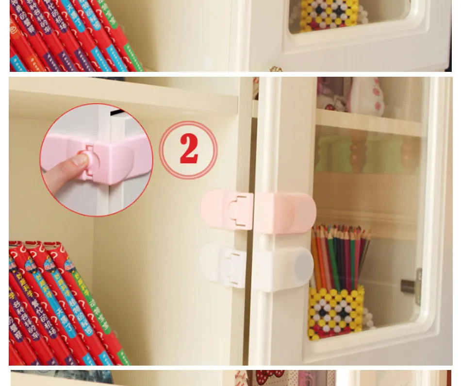 Kids Safety Locks Cabinet Door Drawers Children Safety Protection Plastic Security Lock White Pink Right Angle Lock Baby Safety