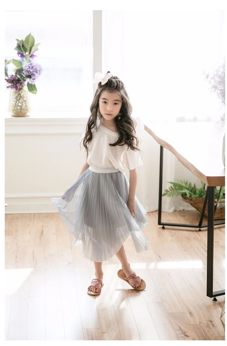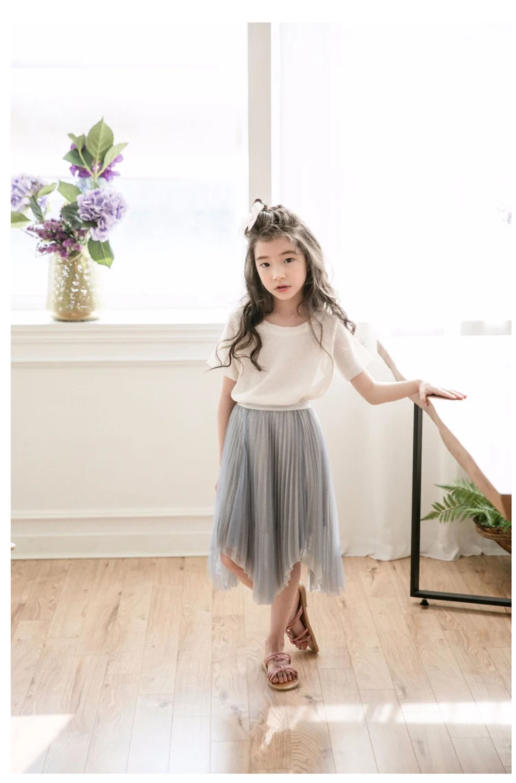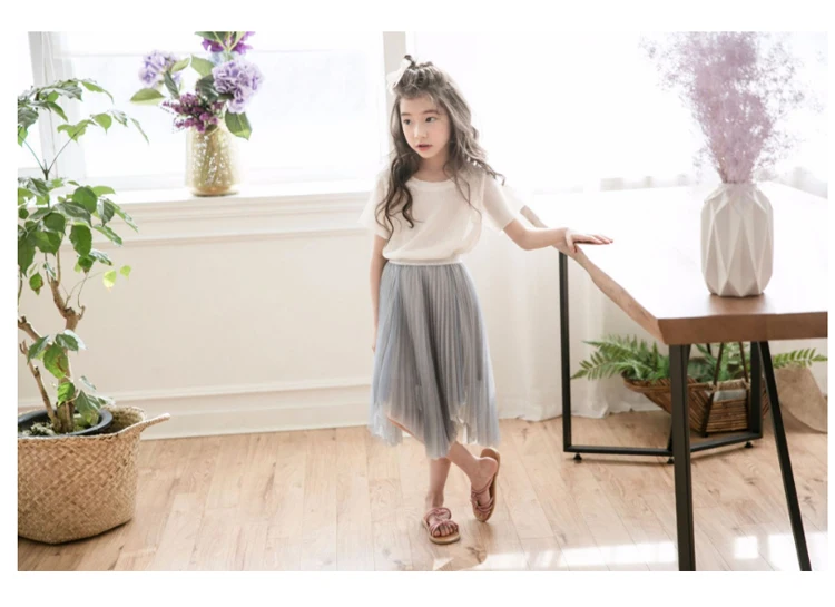 Kids Skirts 4 -14 Yrs Teenage Girl Tulle Skirt Children Irregular Mid-calf Length Skirt 2018 Summer Big Girl Dance Clothes