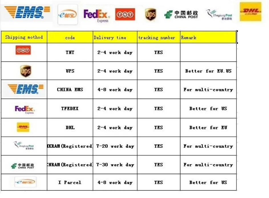 Packages from our warehouse in China will be shipped by ePacket or EMS depending on the weight and size of the product. Packages shipped from our US warehouse are shipped through USPS.