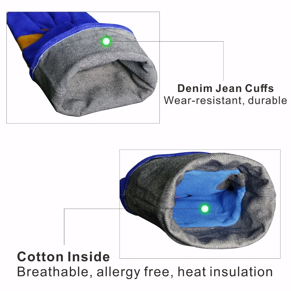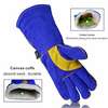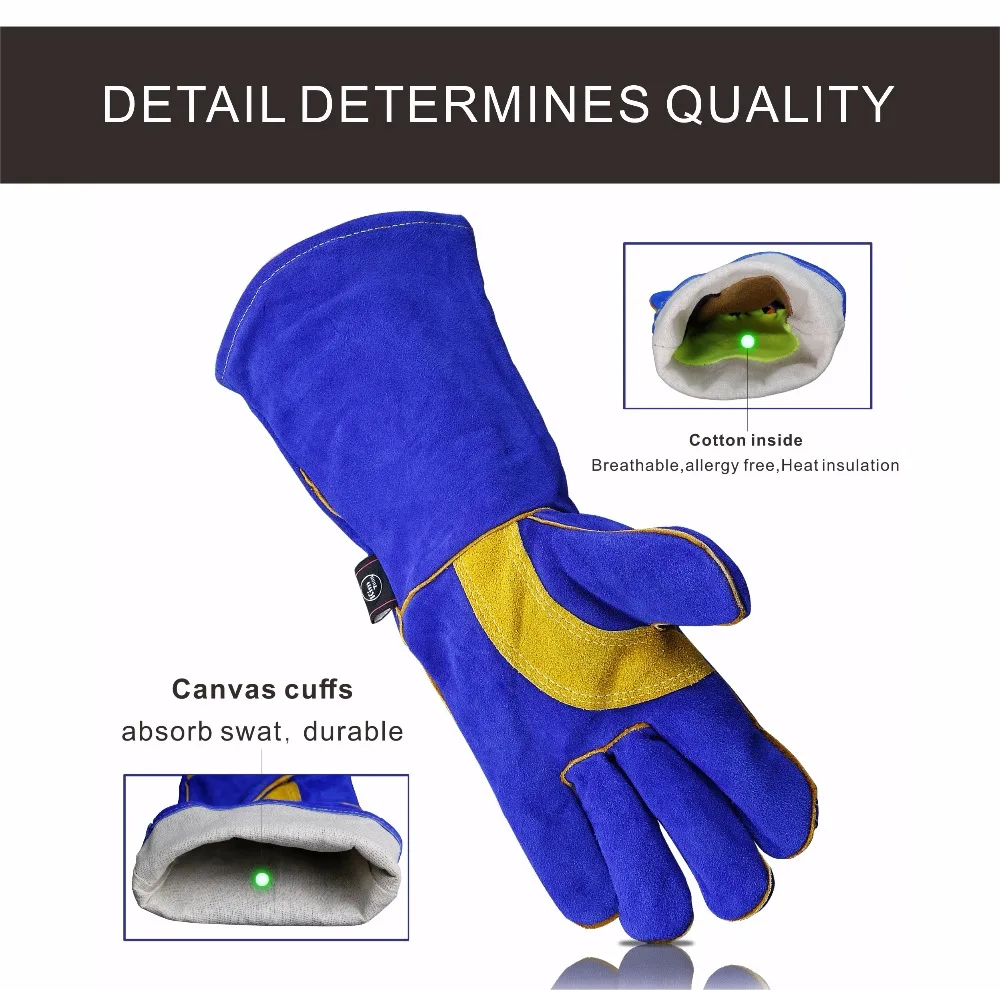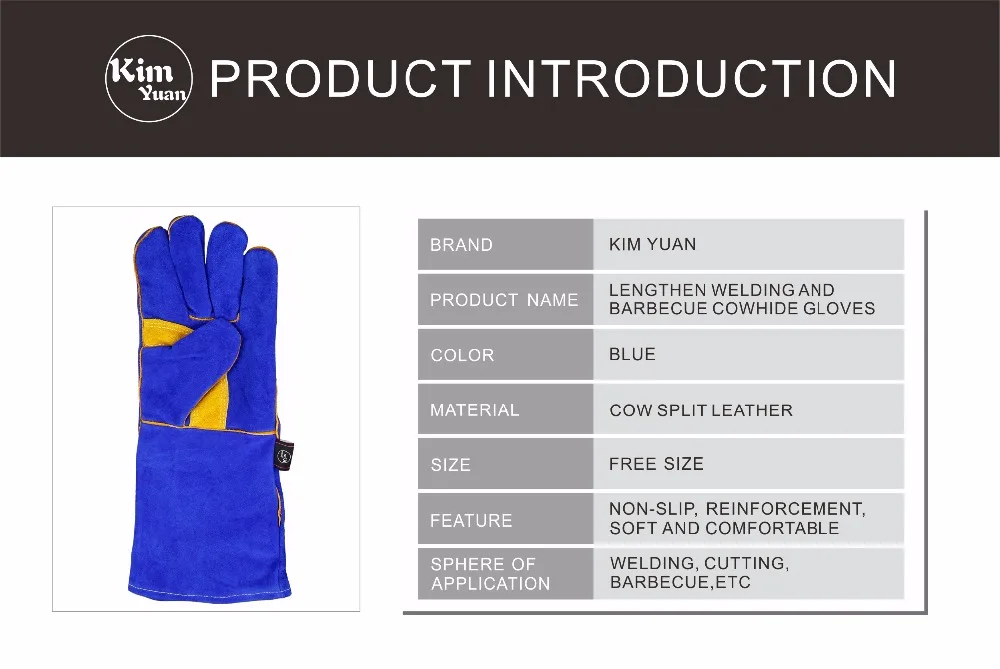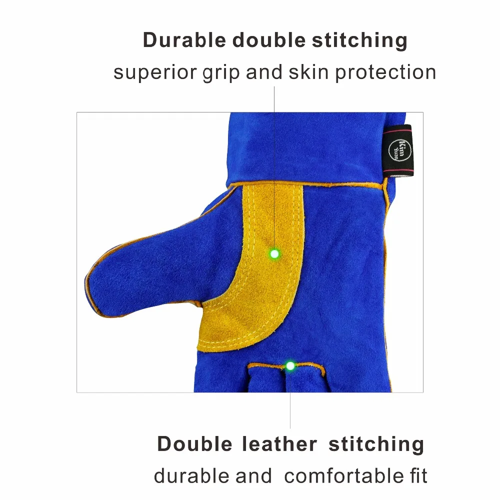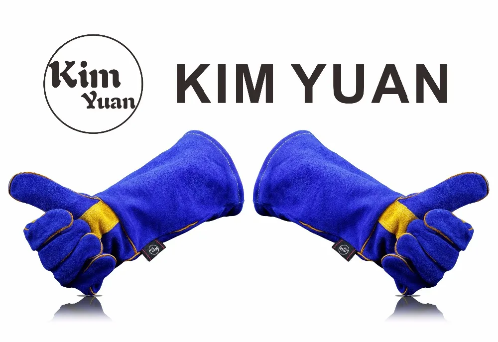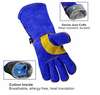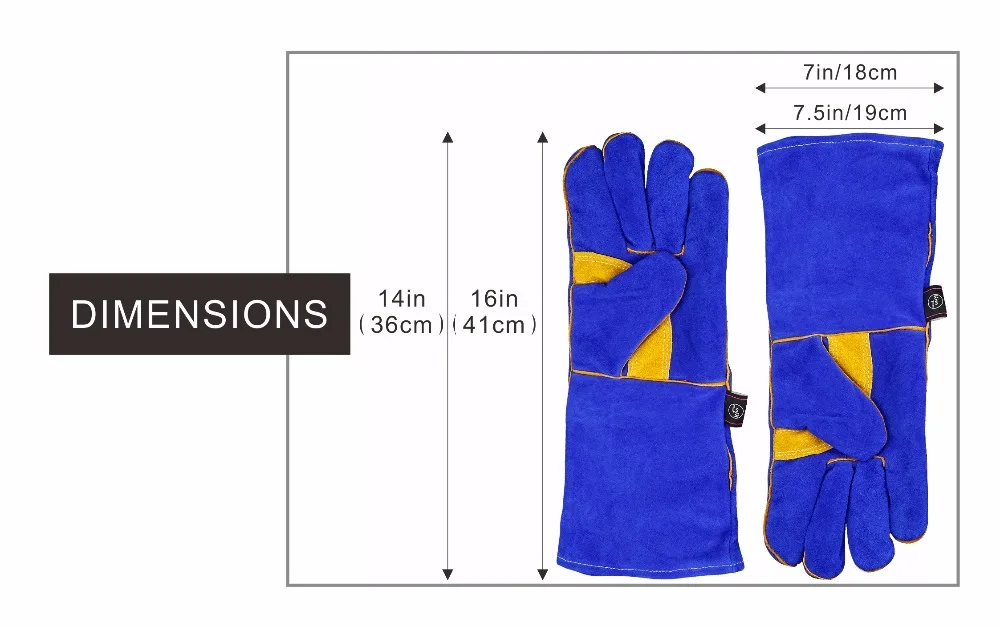 KIM YUAN 005/6/9/11L Leather Welding Gloves-Heat/Fire Resistant, for Welder/Oven/Fireplace/Animal Handling/BBQ -Blue 14&16in