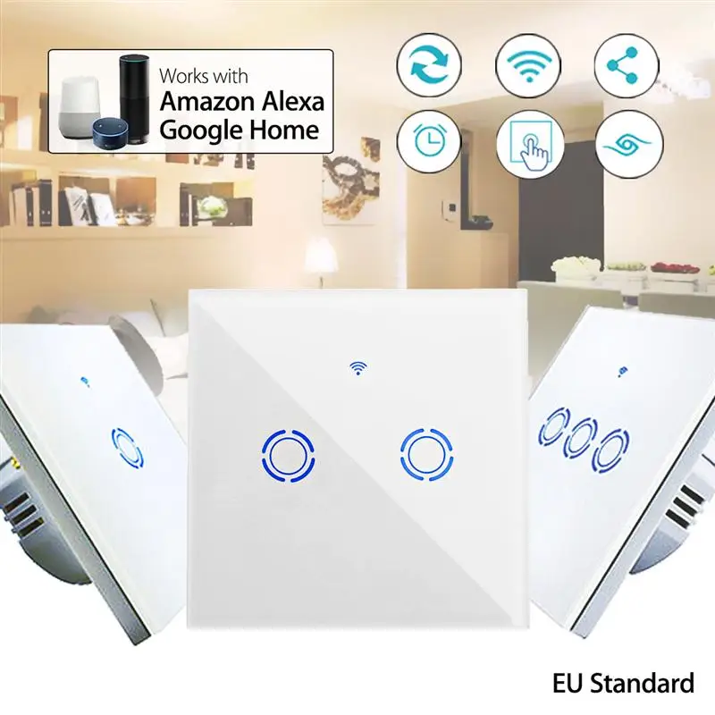 Kinco 86mm WIFI Smart Wall EU Switch Touch Panel APP Remote Control For Alexa/Google Home Voice Control Automatic Module