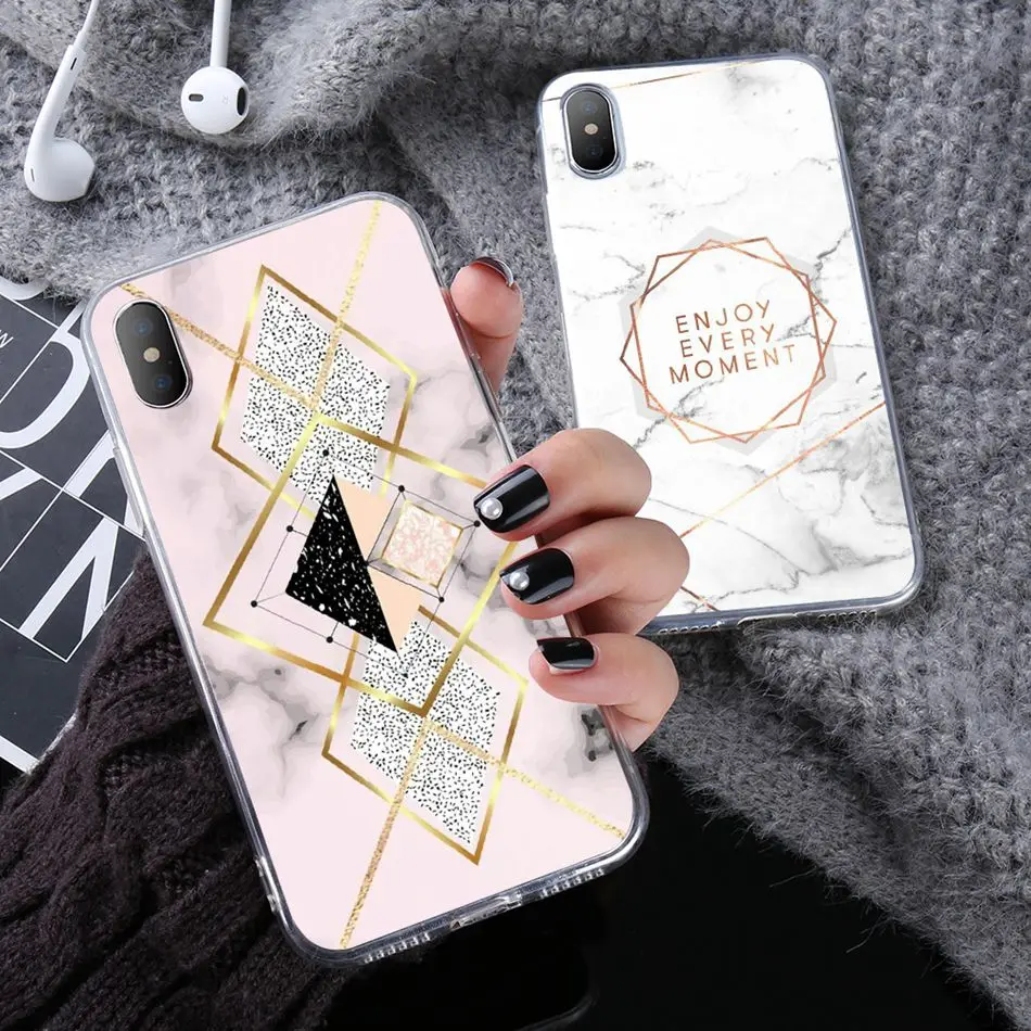 KISSCASE Marble Phone Case For iPhone 5 5s Se X XS Max XR Rose Triangle Soft Coque Case For iPhone 6 6S 7 8 Plus TPU Back Covers