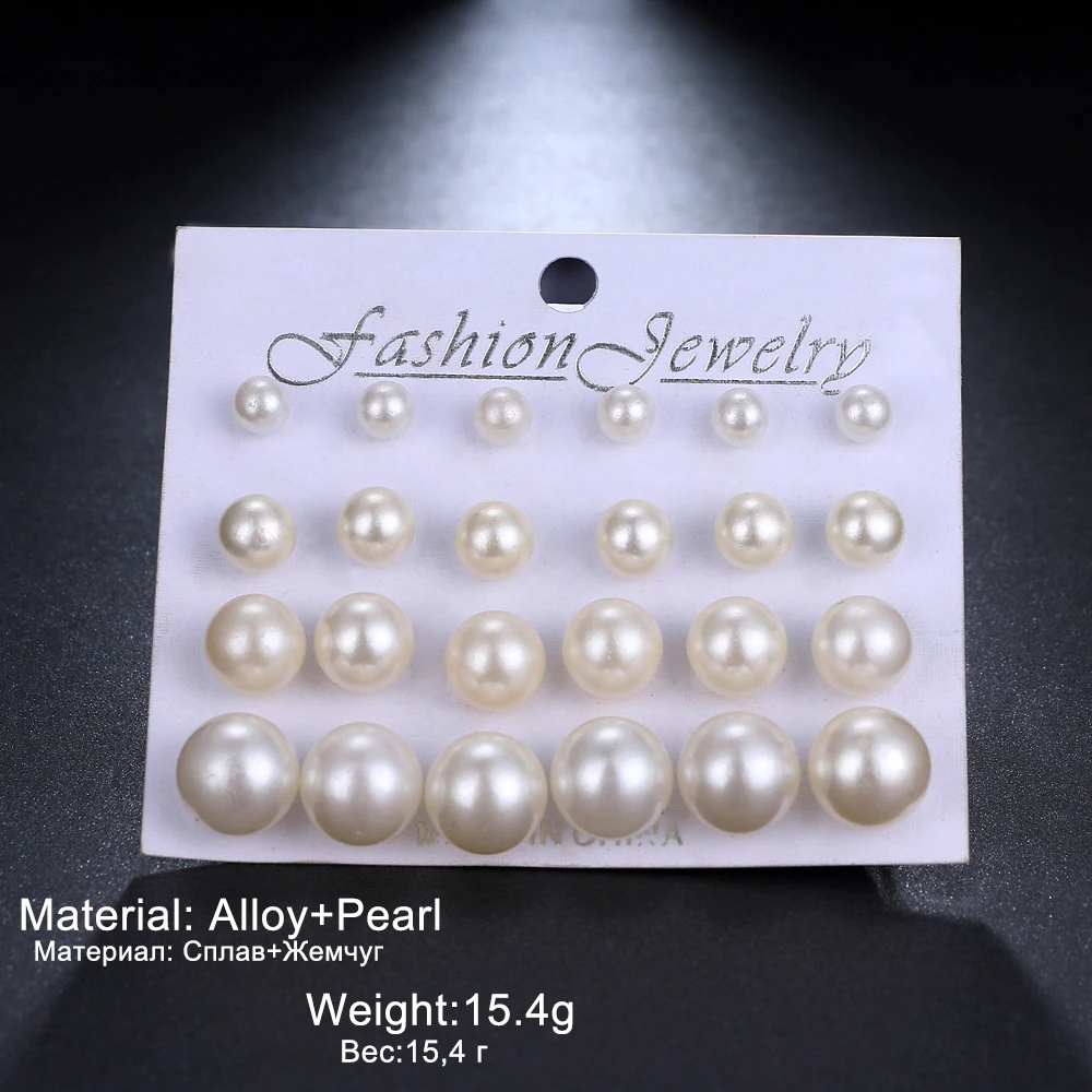 KISSWIFE 12Pairs/Set Simulated Pearl Earrings For Women Jewelry Bijoux Brincos Pendientes Mujer Fashion Stud Earrings