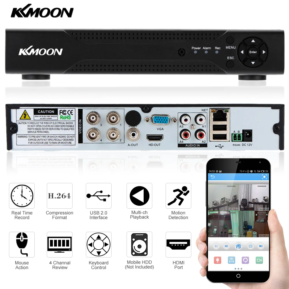 KKMOON 960H 4CH 720P AHD DVR Recorder Network DVR 4 Channel H.264 CCTV 4CH DVR HVR NVR System P2P for Home Security Camera