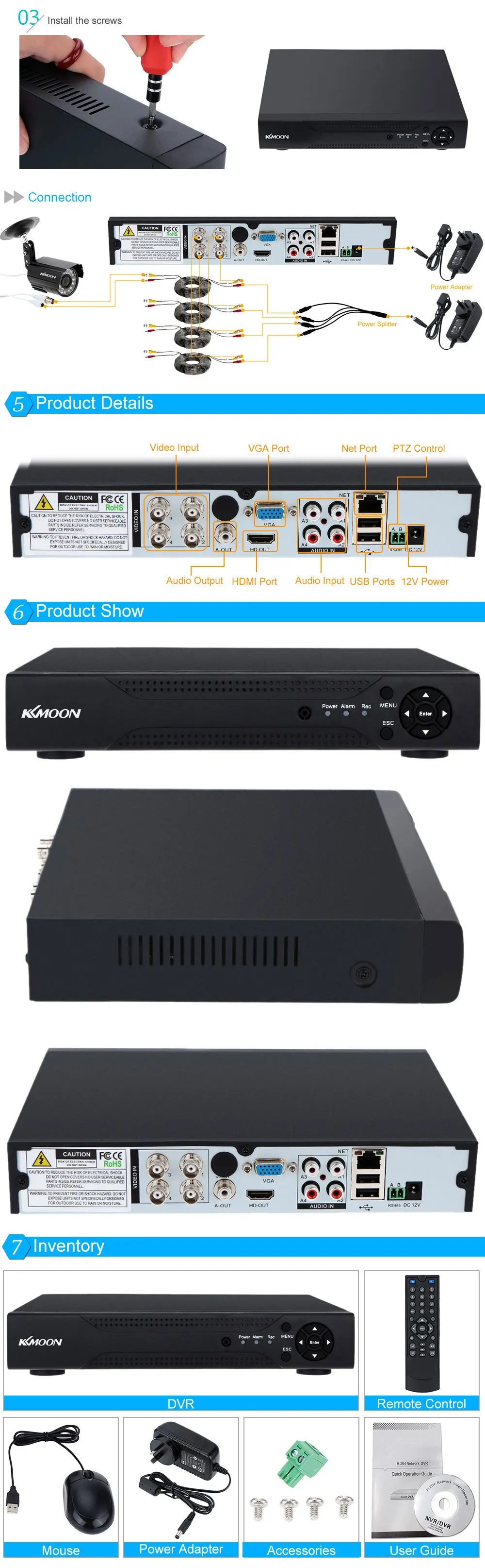 Our home security system DVR have many uses: the security detection of public places, monitoring for unattended stores and warehouses protection, the parks and rides security record and observation, Safety Monitoring for cottages and residential areas, and other surveillance needs for outdoor/indoor.
