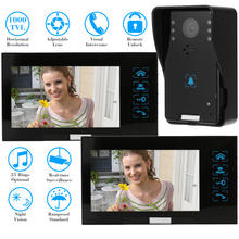 This video door phone features 7in LCD monitor with touch button, including one 1000TVL outdoor camera and two indoor monitor, which combines functions of visual intercom, real-time surveillance, remote unlock, rainproof and night vision, which is widely used in villas, apartments, houses, hotels, offices, public buildings and so on.