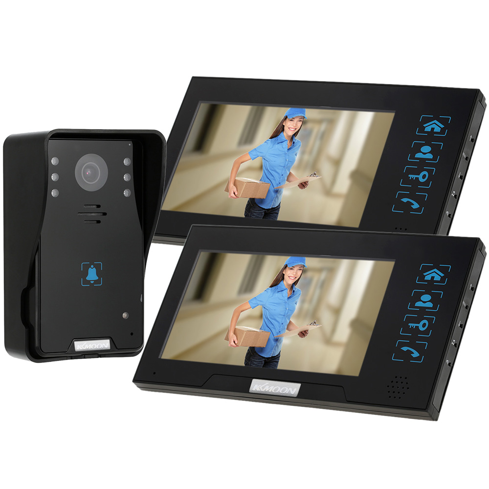 KKMOON 7″ TFT Video Door Phone HD 1000TVL Home Intercom Doorbell Recording 1 Rainproof Doorbell Camera And 2 Hands Free Monitor
