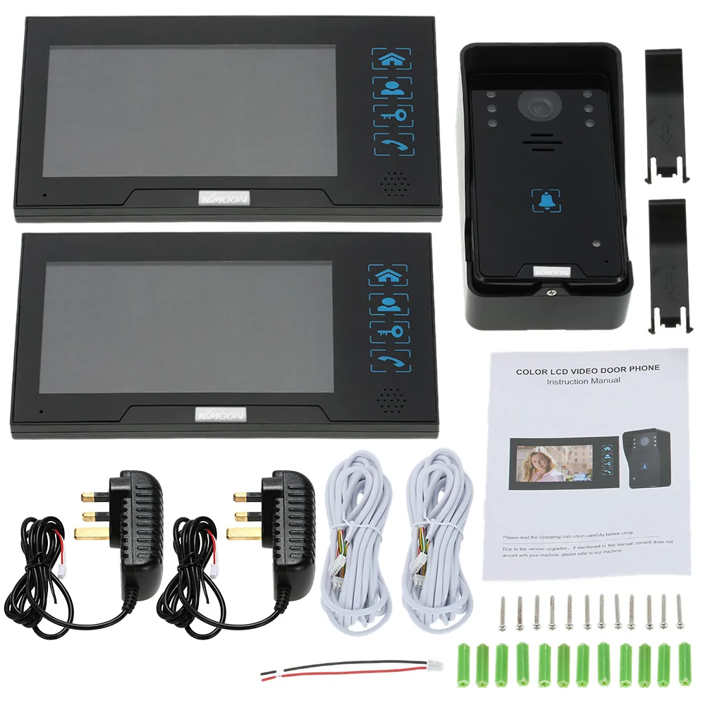 KKMOON 7″ TFT Video Door Phone HD 1000TVL Home Intercom Doorbell Recording 1 Rainproof Doorbell Camera And 2 Hands Free Monitor
